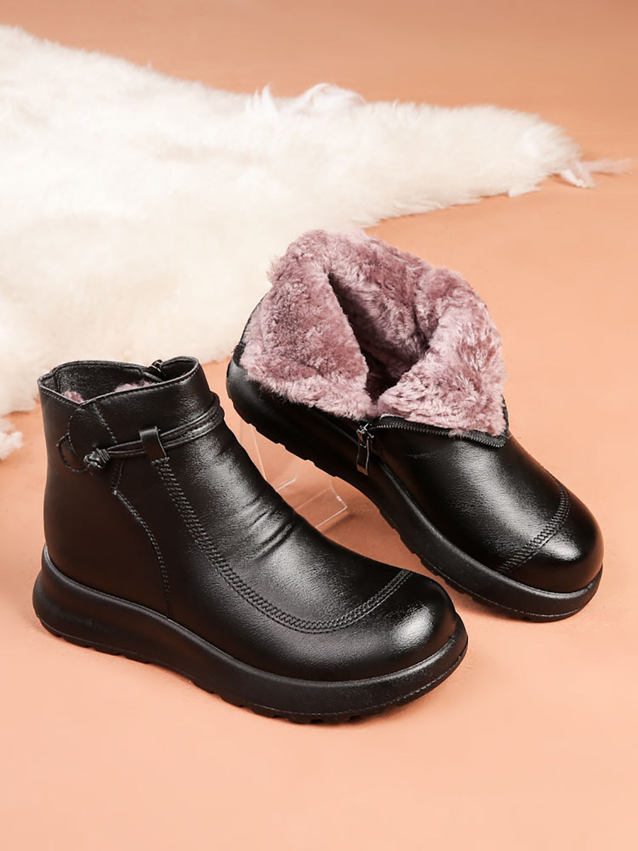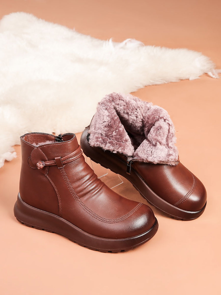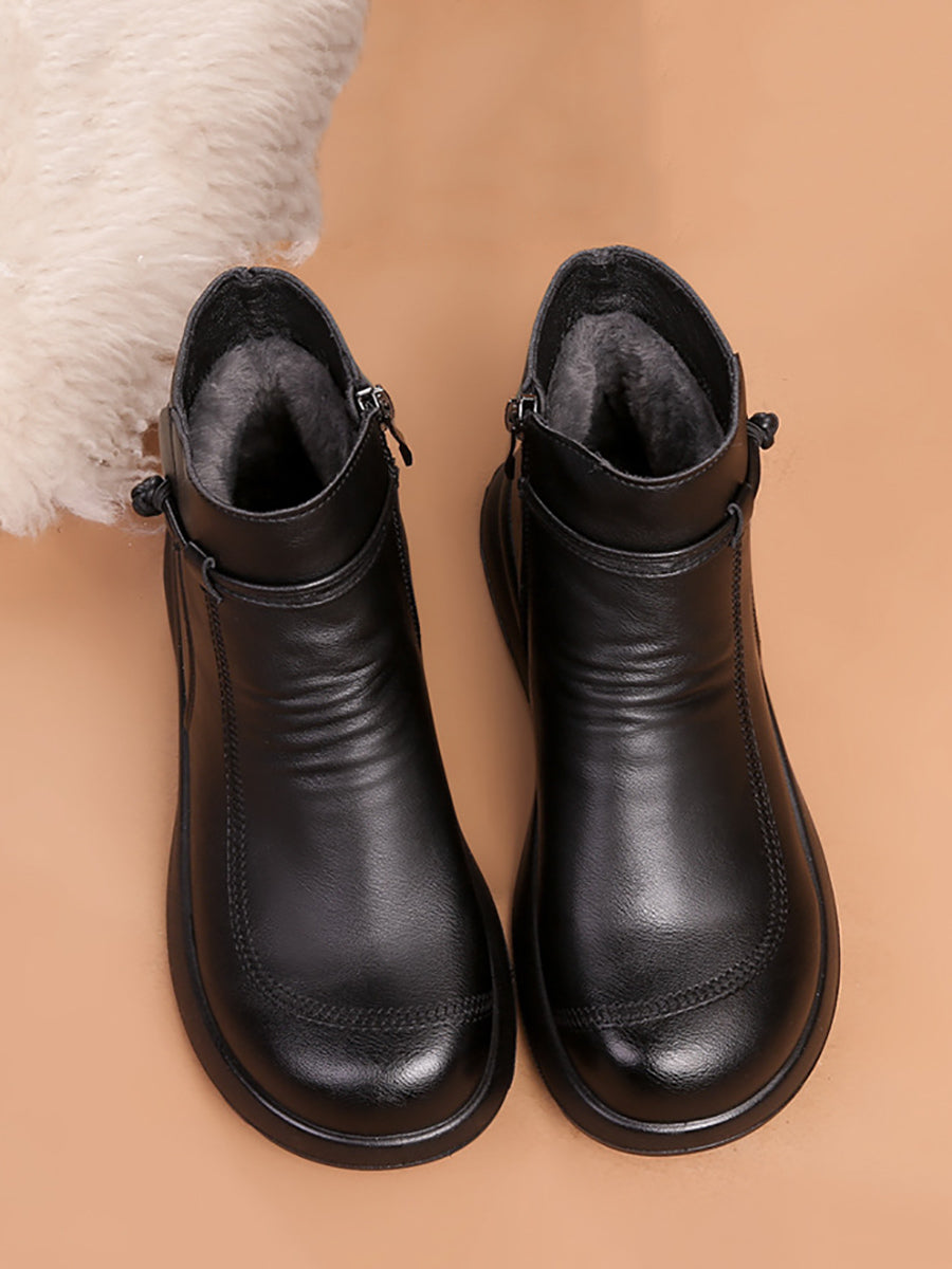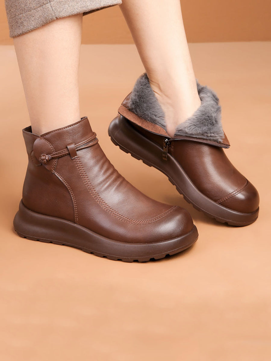 Women Winter Genuine Leather Fleece-lined Ankle Boots
