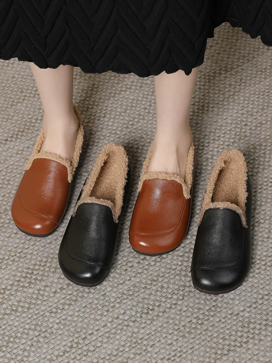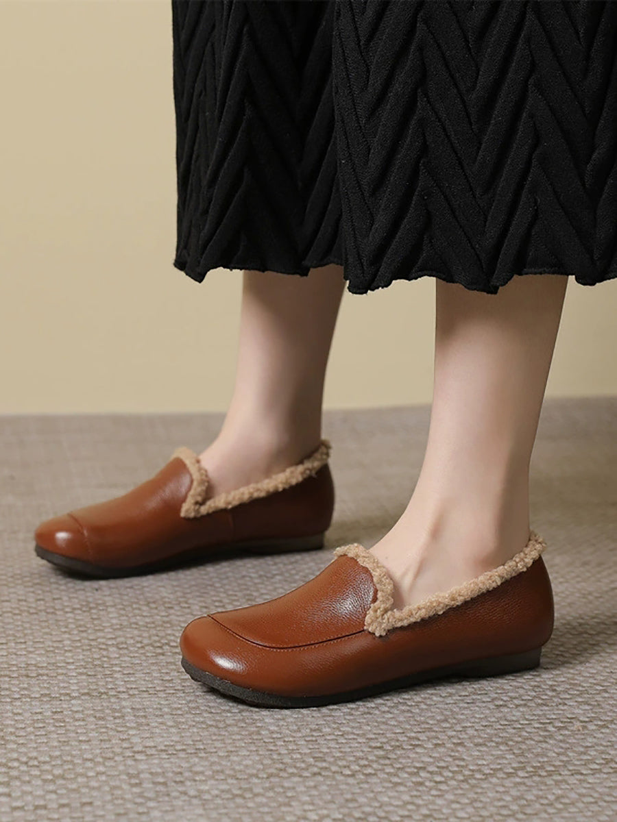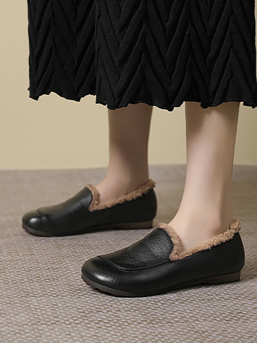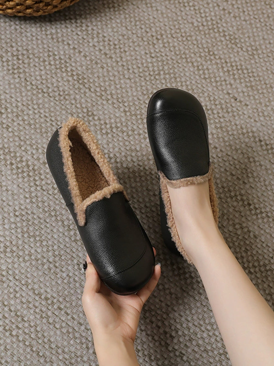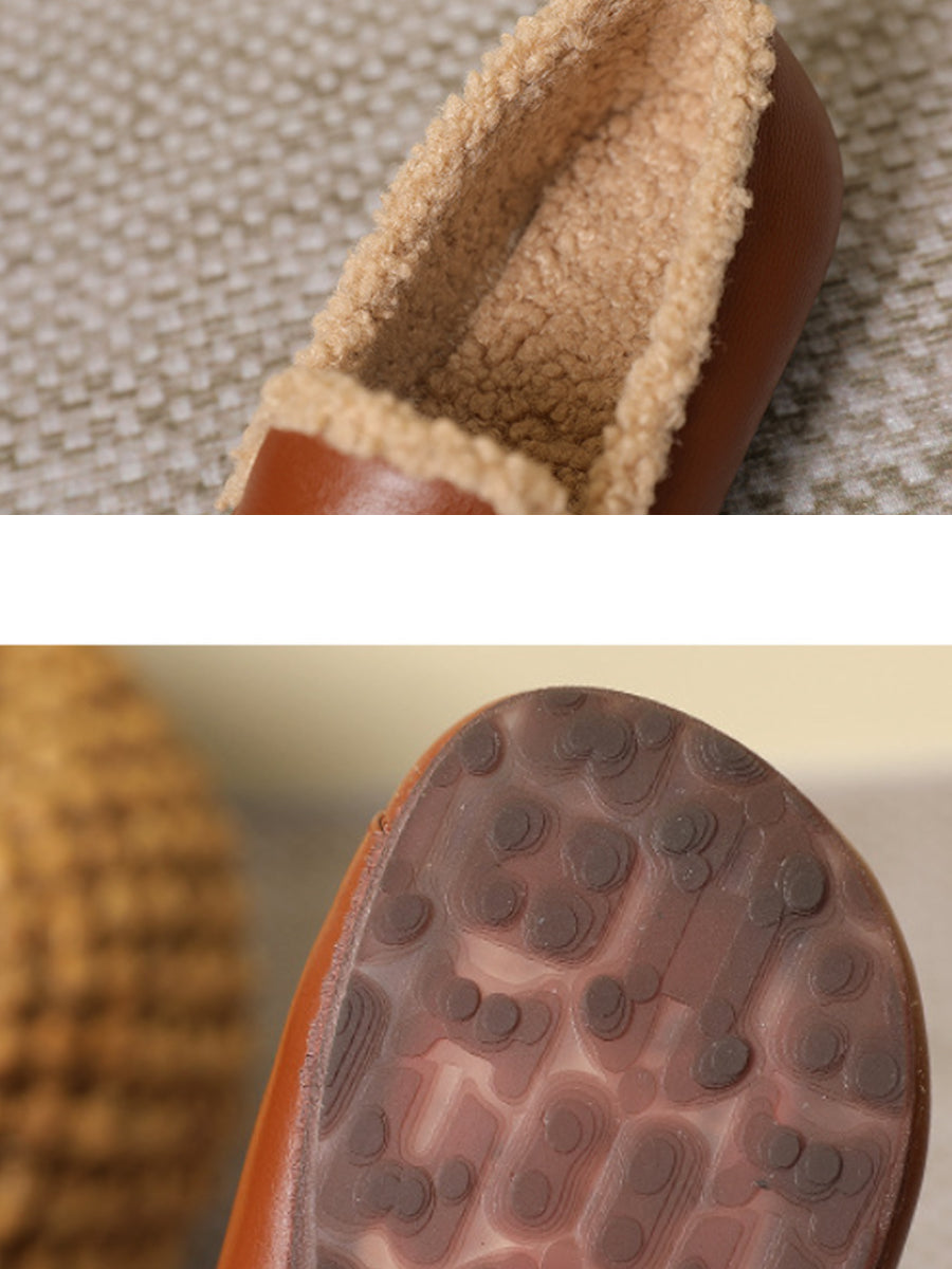 Women Winter Genuine Leather Fleece-lined Low Heel Shoes