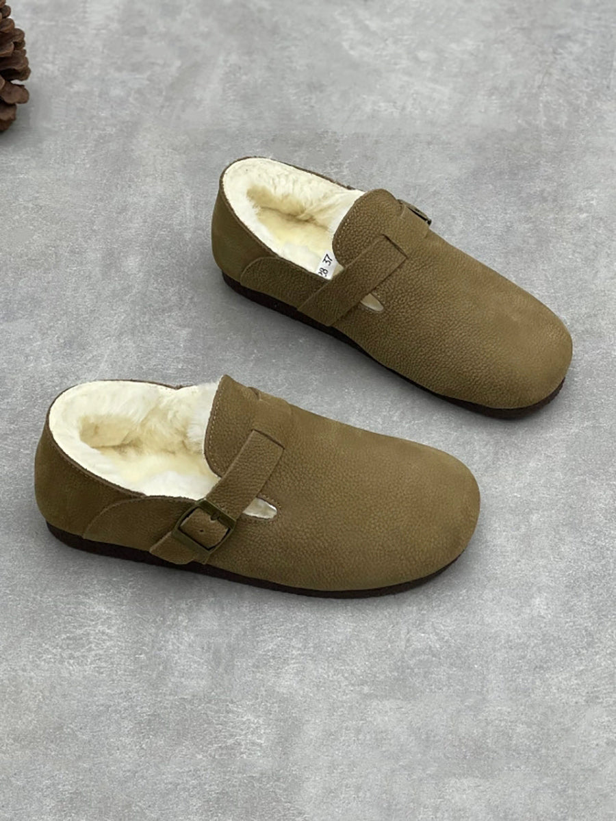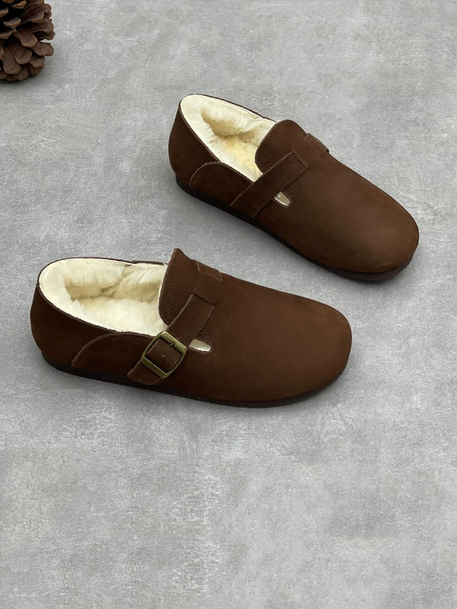 Women Winter Pure Color Leather Fleece-lined Shoes