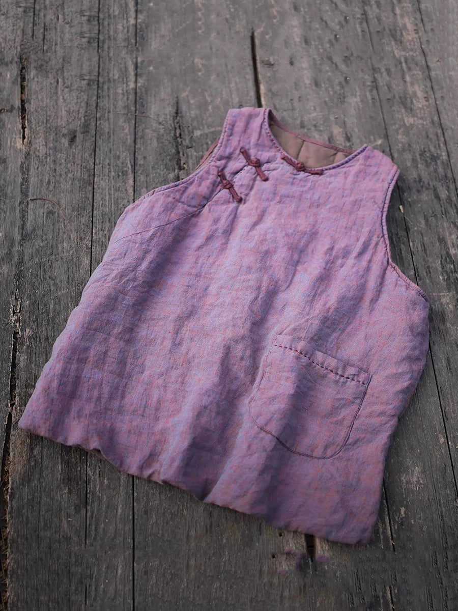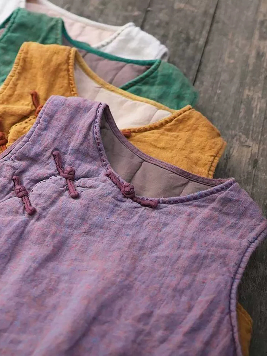 Women Winter Pure Color O-Neck Linen Padded Vest