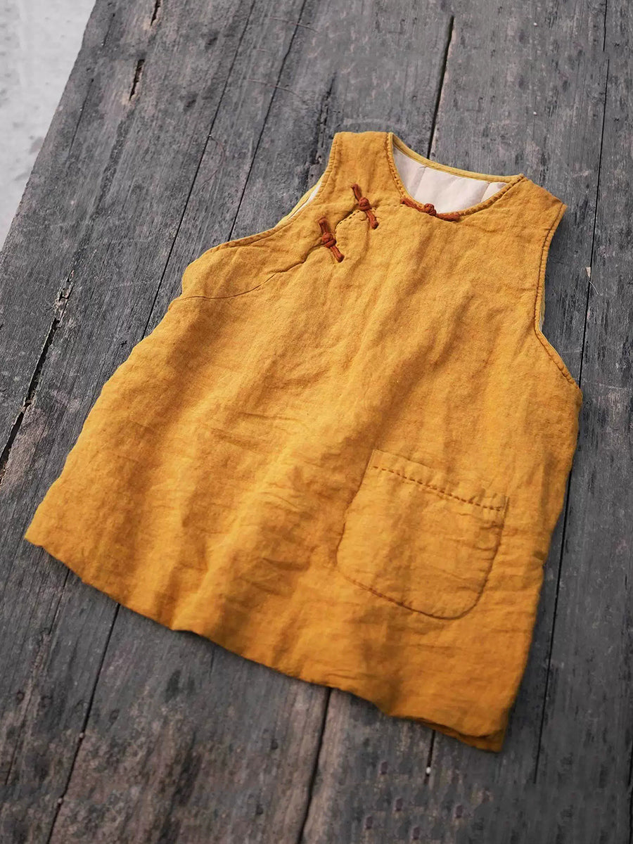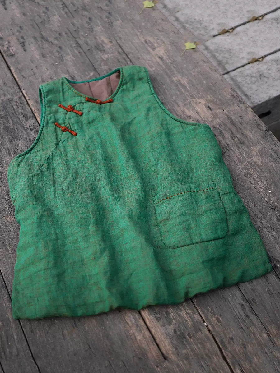 This sophisticated linen padded vest combines functional warmth with understated elegance. Featuring a refined o-neck design and solid colorway, it embodies an ethnic aesthetic that complements contemporary wardrobes. The linen fabric delivers natural breathability and durability, making it an ideal layering solution for autumn and winter seasons. A versatile staple that bridges seasonal transitions with effortless style.