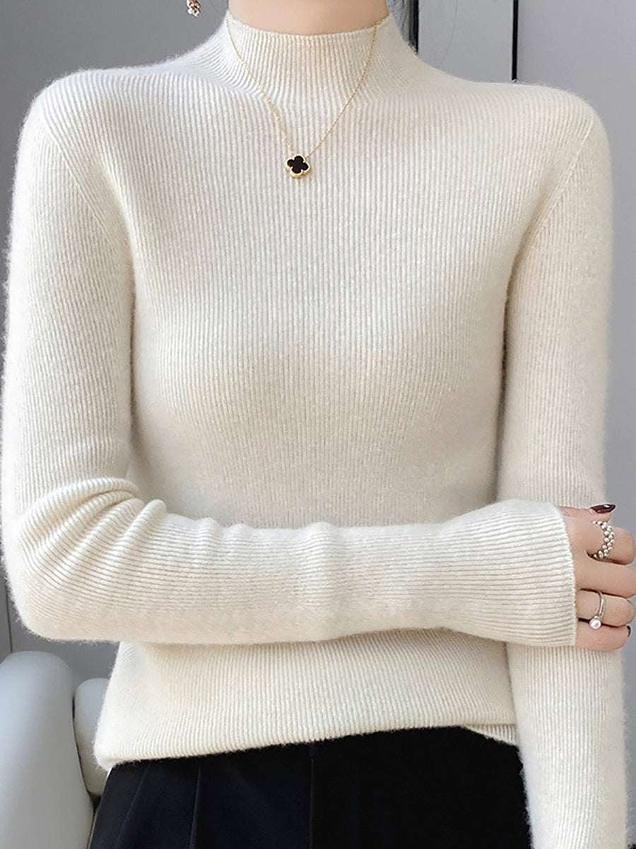 Women Winter Pure Color Wool Half-Turtleneck Sweater