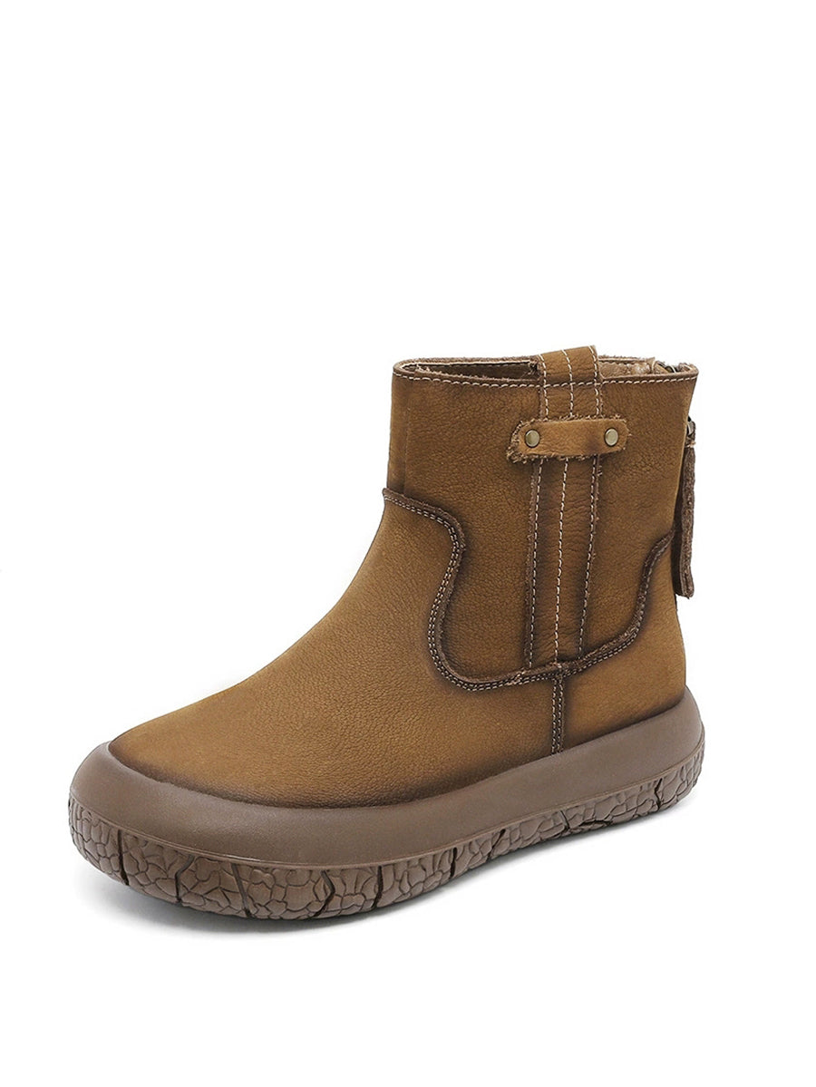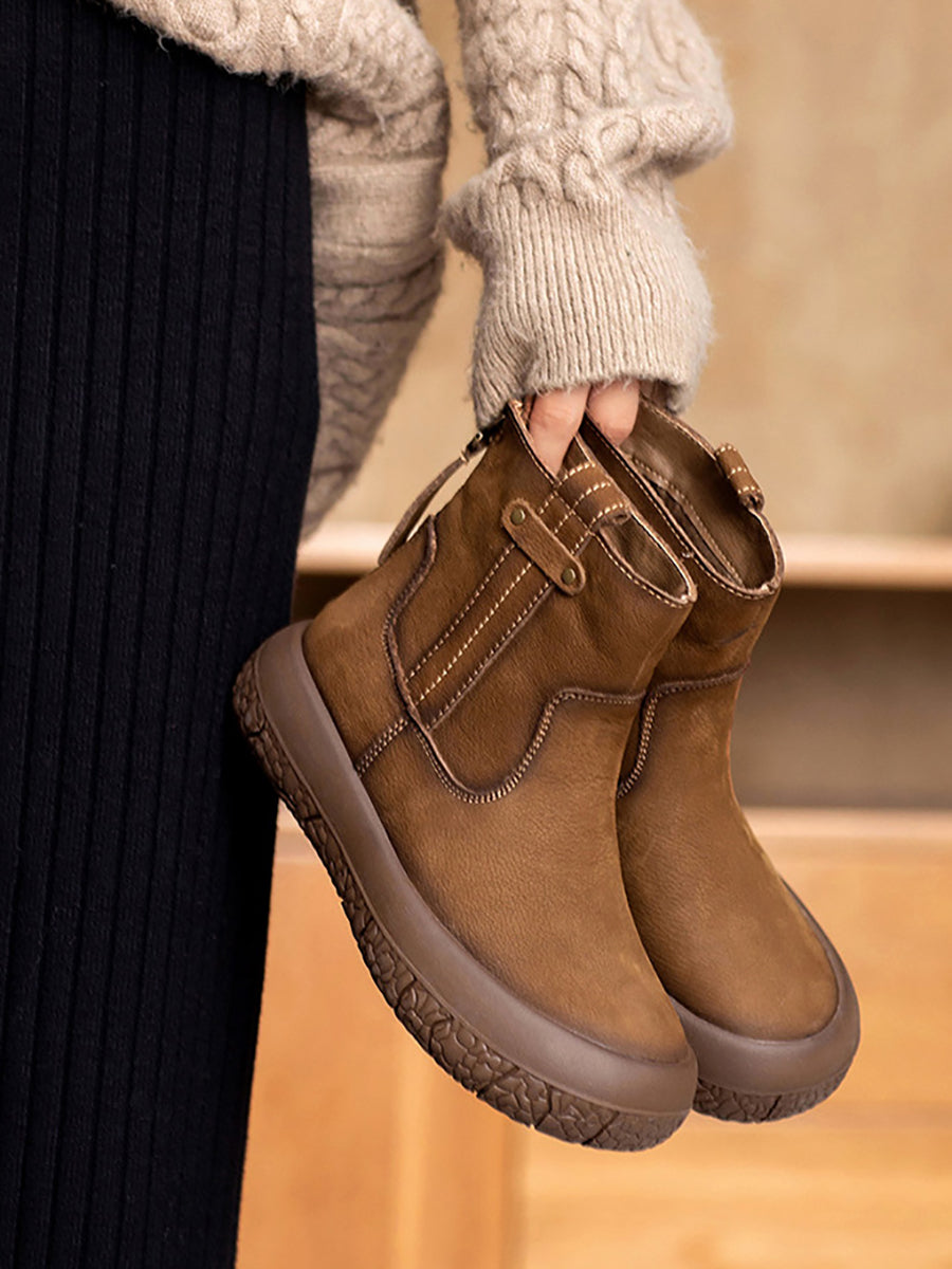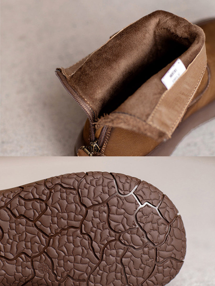 Women Winter Retro Leather Fleece-lined Ankle Boots