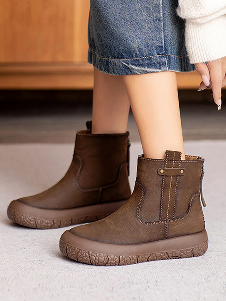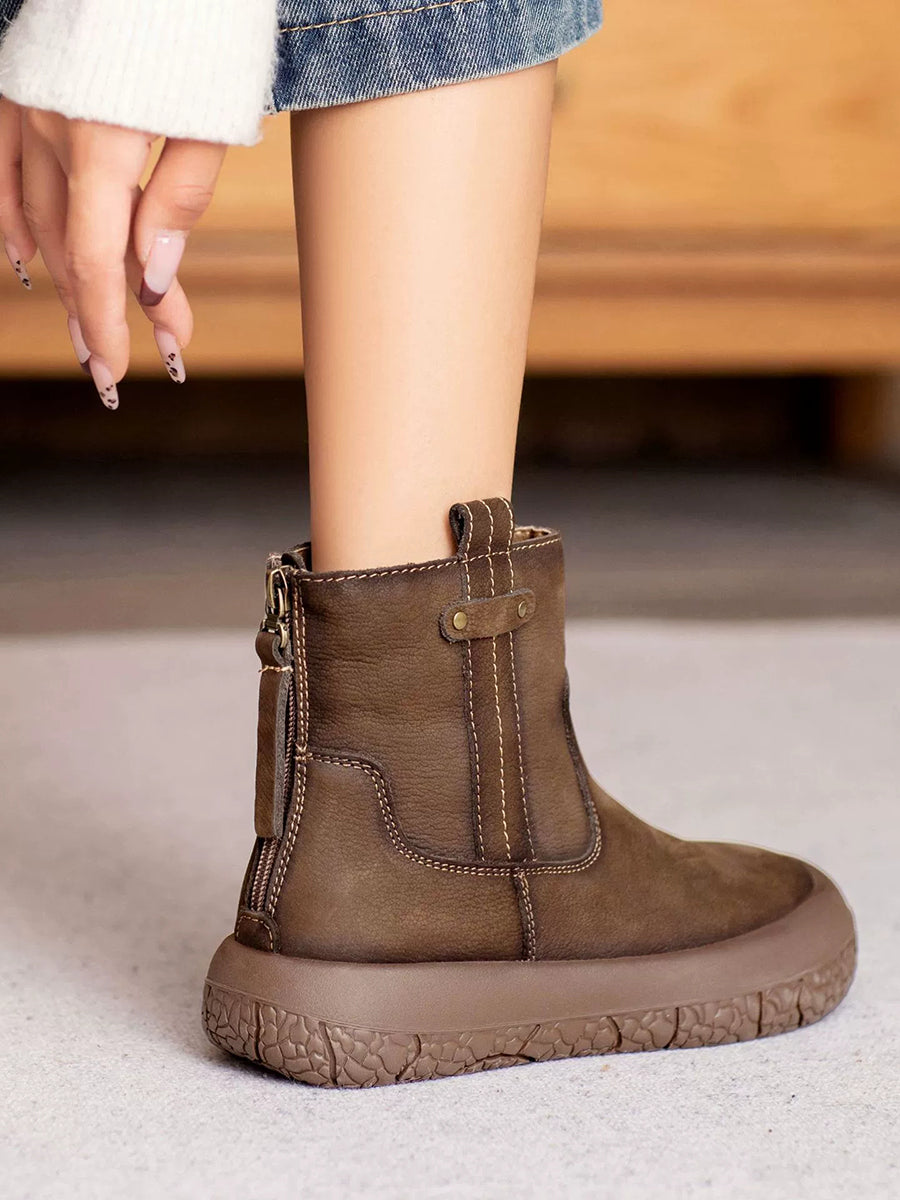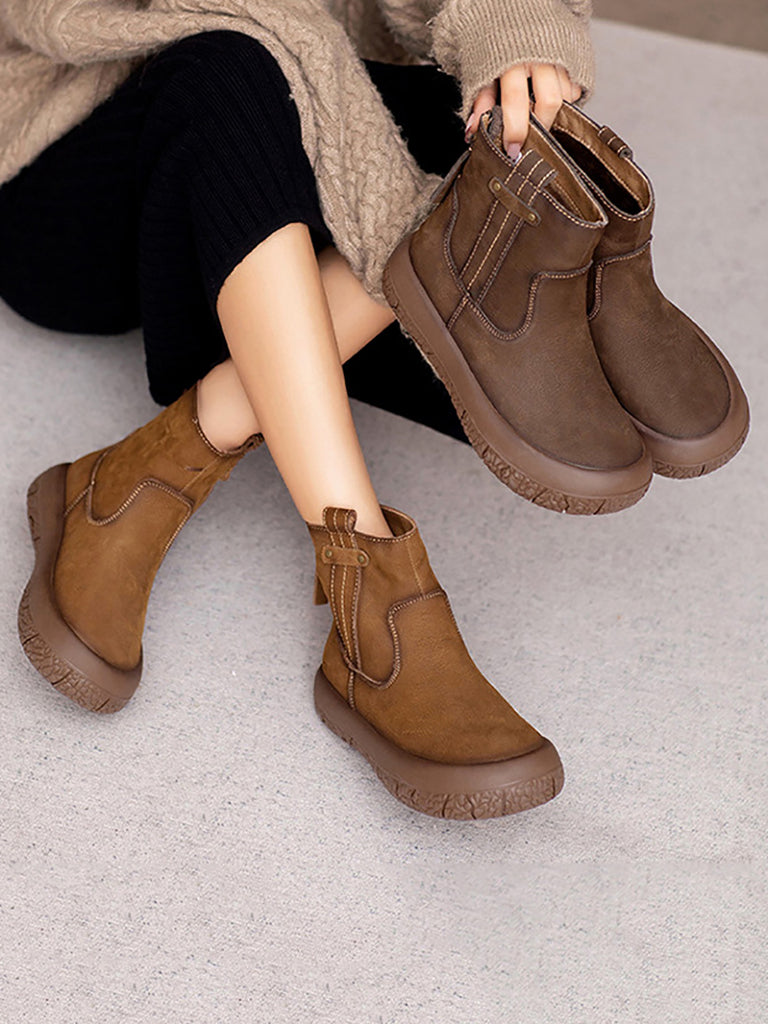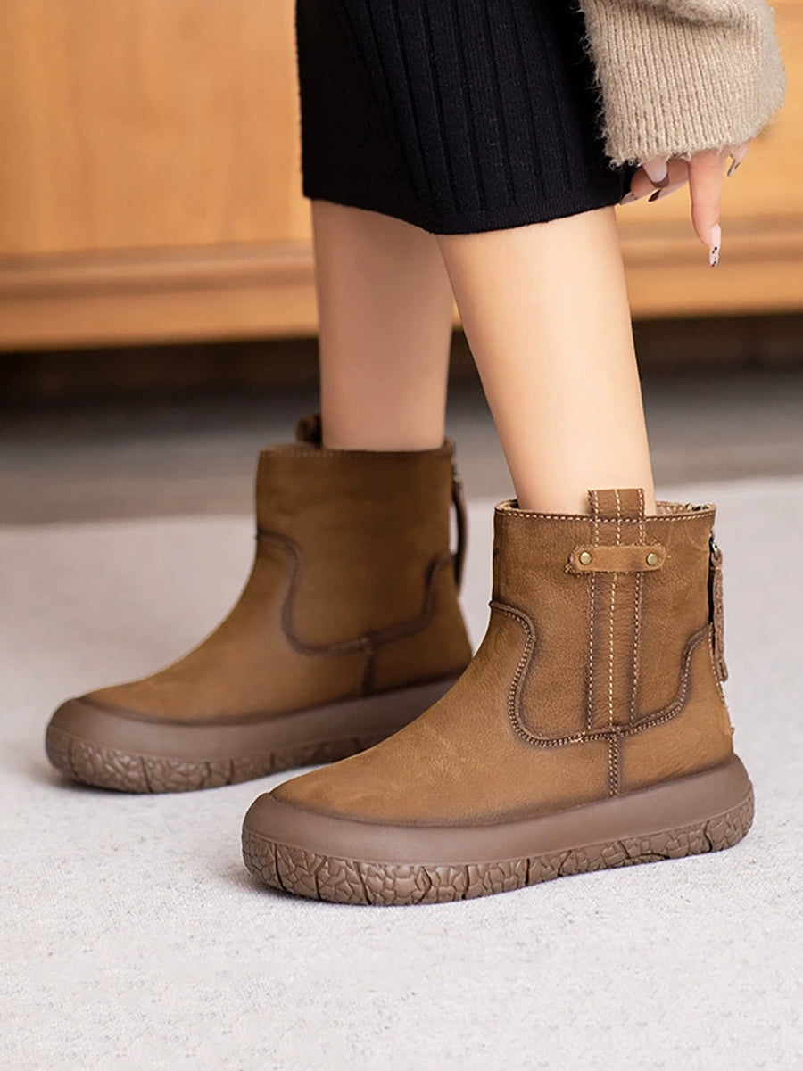 Women Winter Retro Leather Fleece-lined Ankle Boots