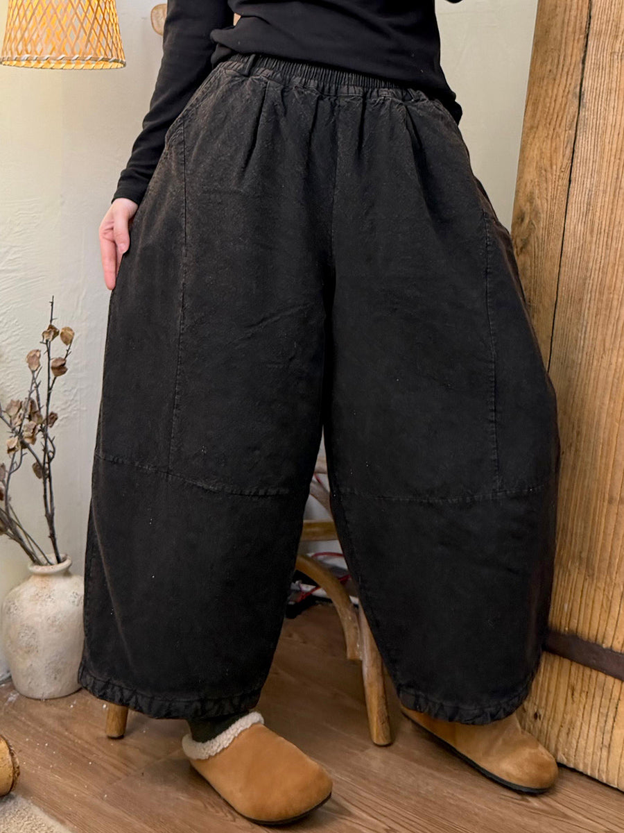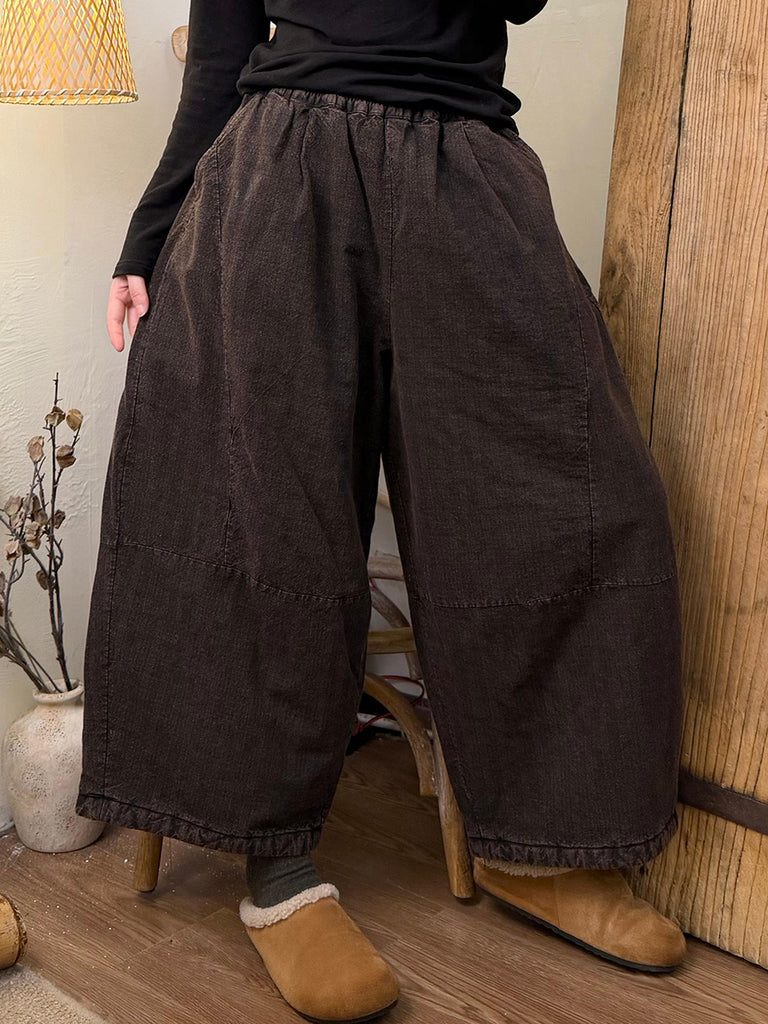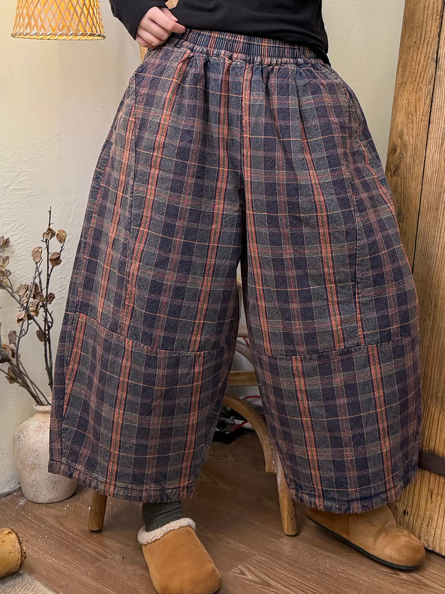 Women Winter Retro Plaid Stripe Straight Padded Pants
