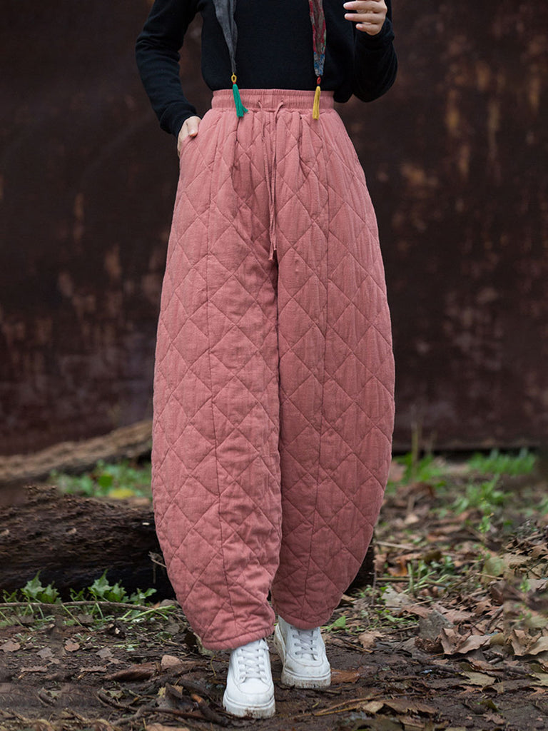 Women Winter Retro Solid Padded Cotton Harem Pants