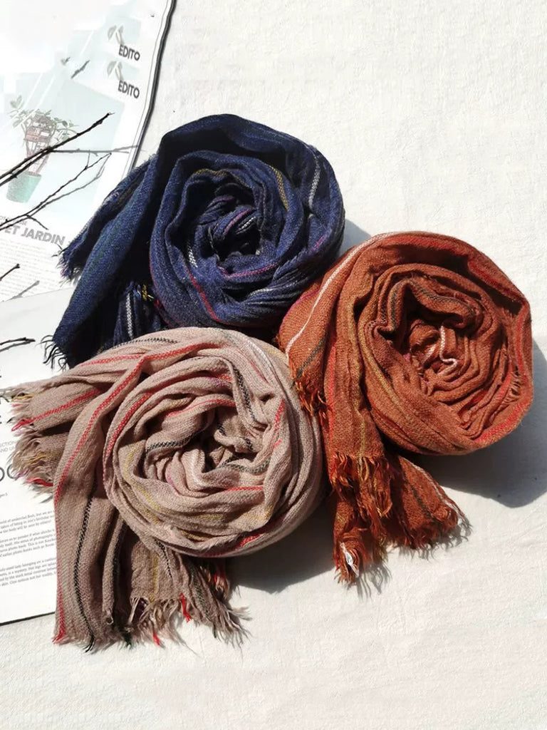 Women Winter Vintage Stripe Warm Shawl Scarf