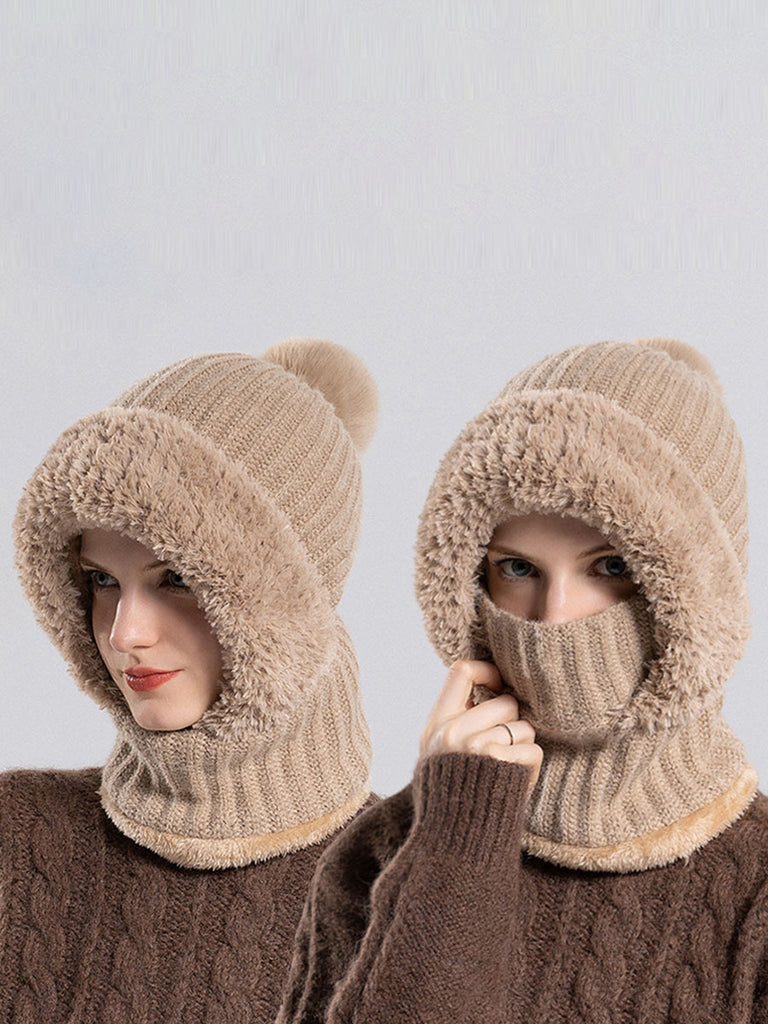 Women Winter Warm Knitted Plush Scarf Hat
