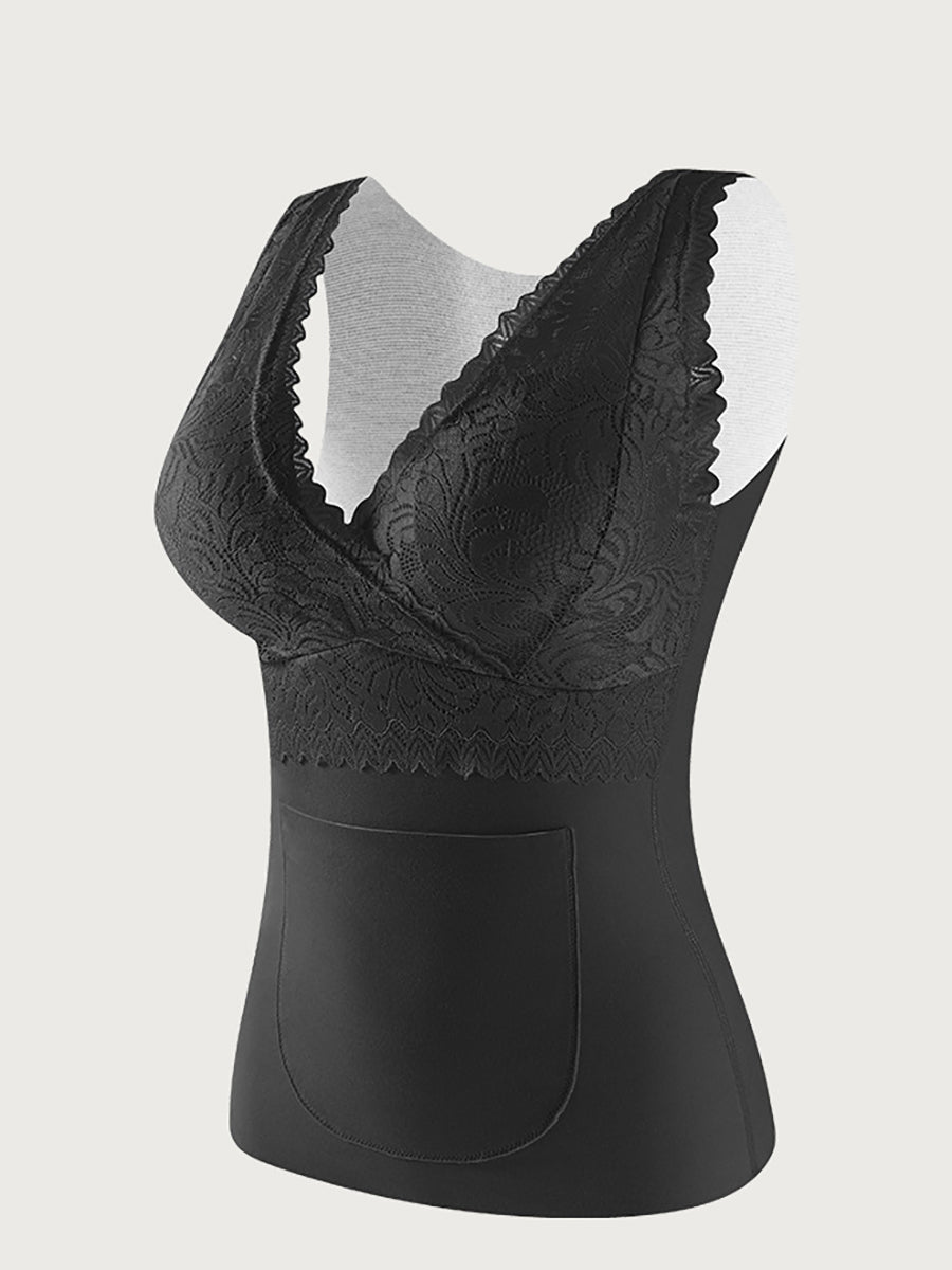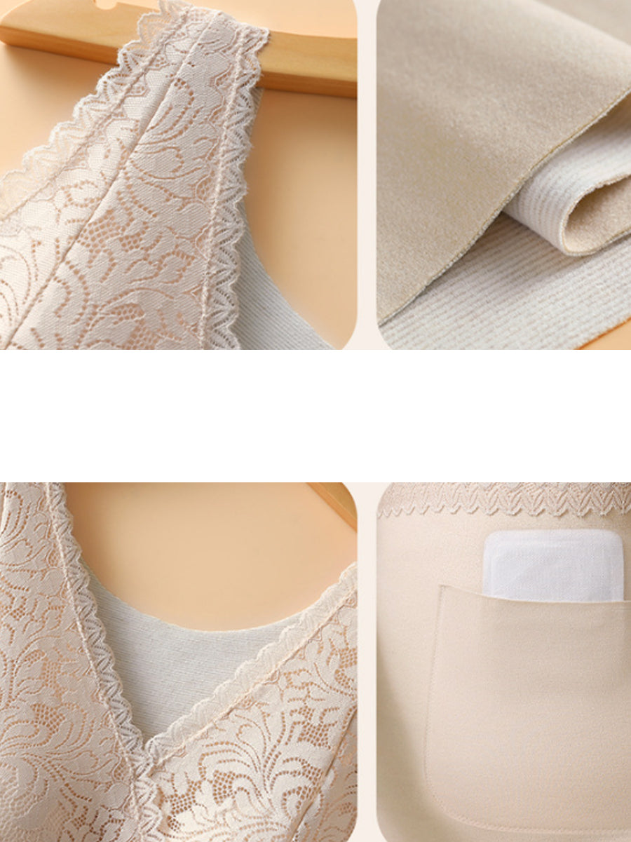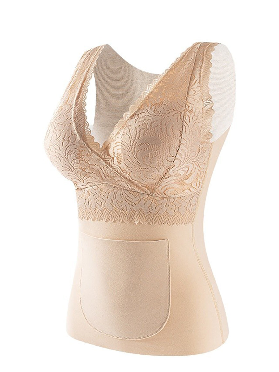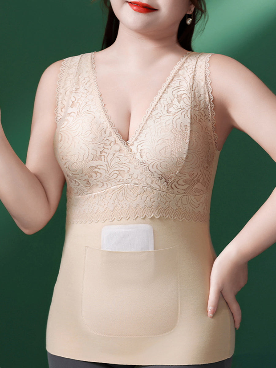 Women Winter Warm Lace With Bra Pads Base Vest