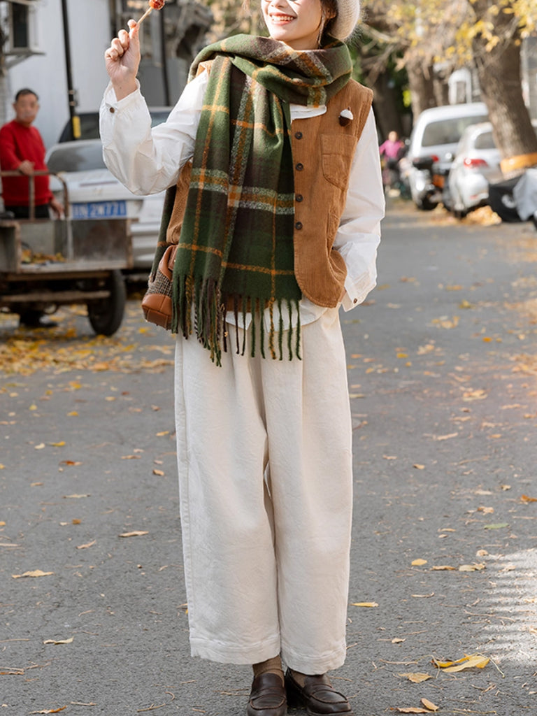 Women Winter Warm Plaid Taasel Shawl Scarf