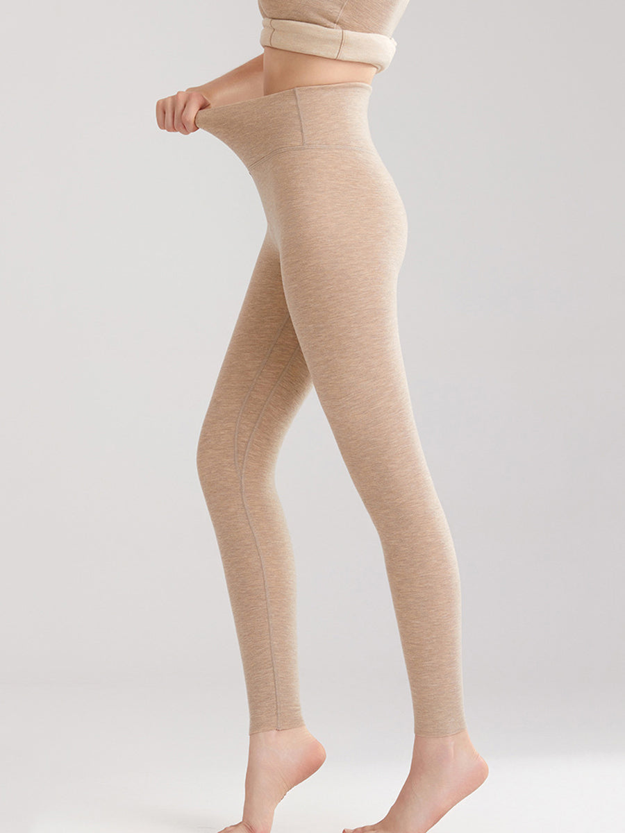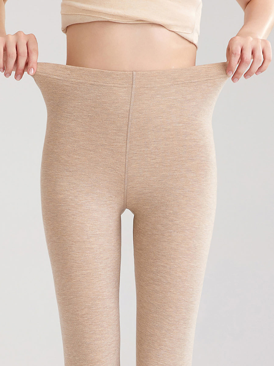 Women Winter Warm Pure Color Mid-Waist Leggings