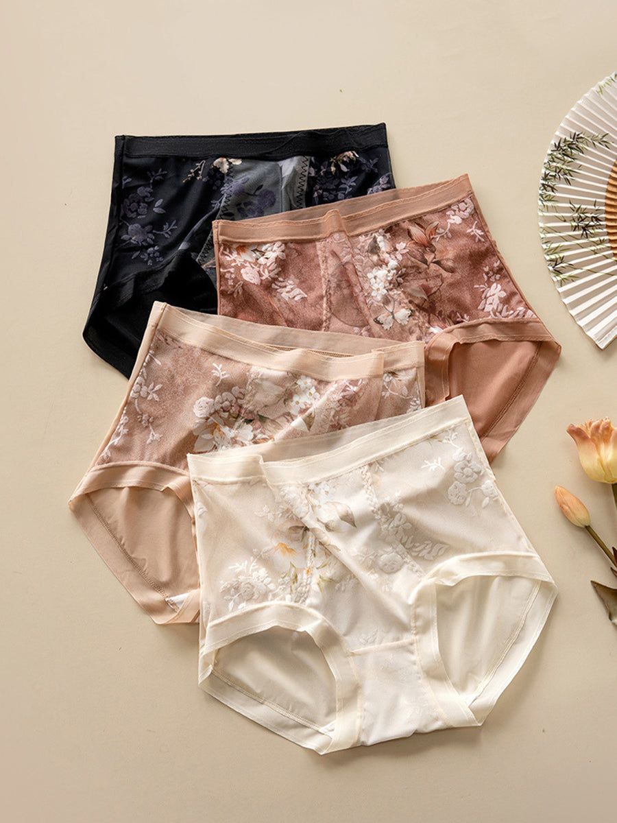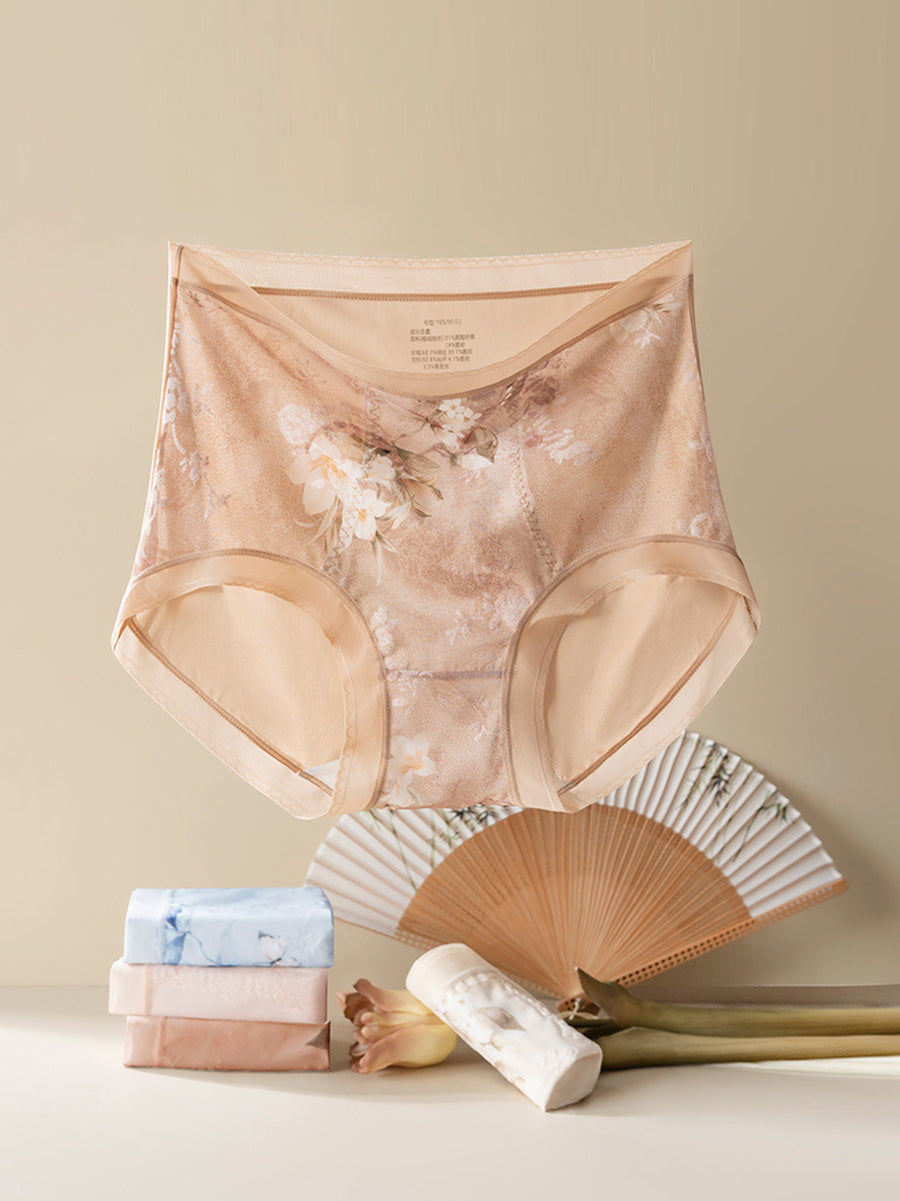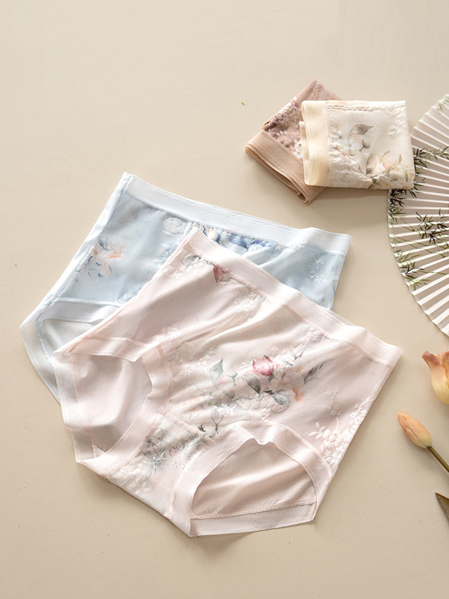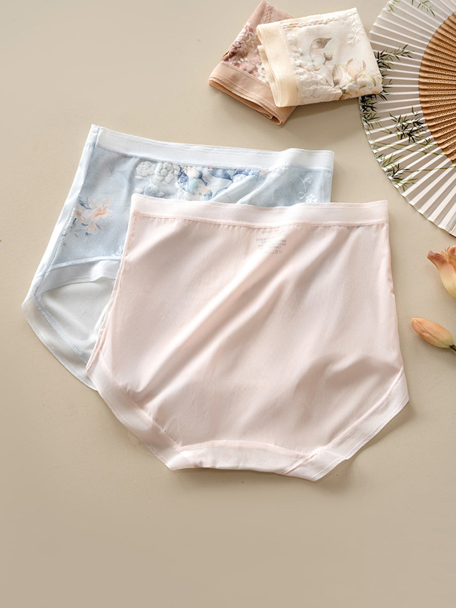 2 piezas de ropa interior de cintura alta con flores artísticas para mujer
