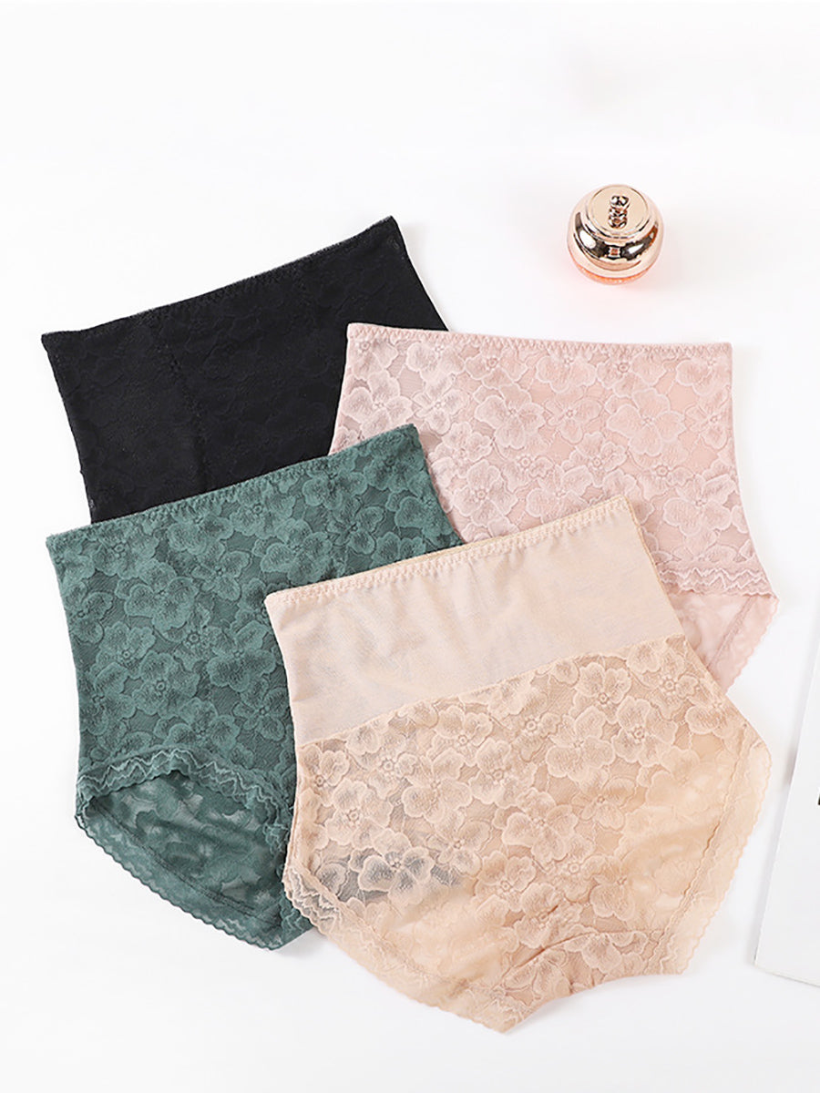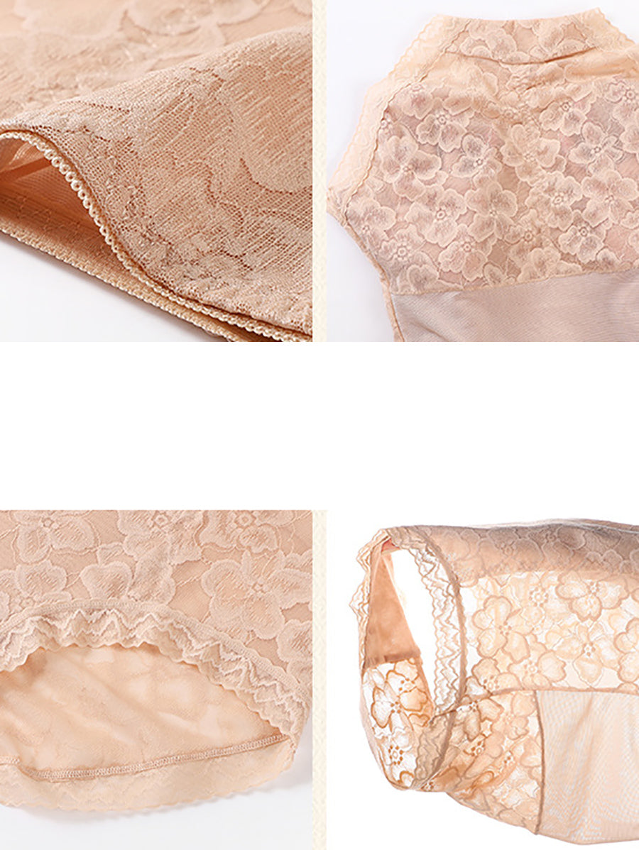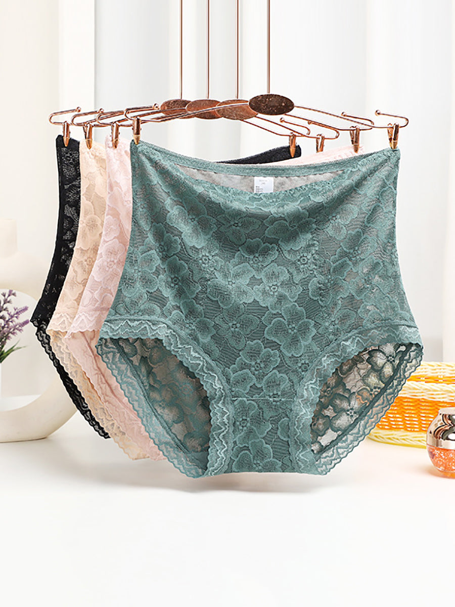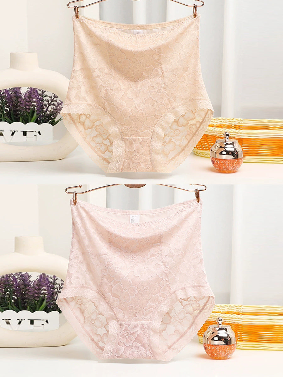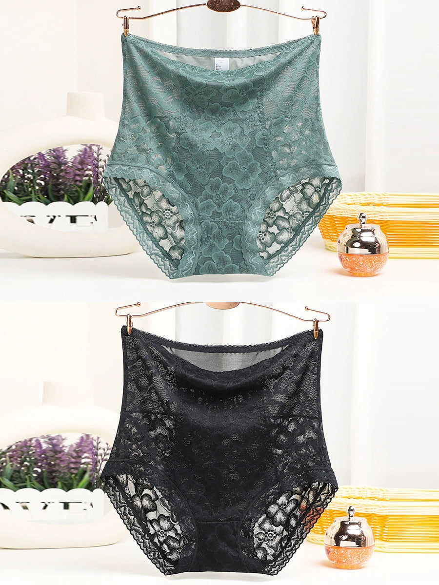 2 piezas de ropa interior de cintura alta con encaje artístico para mujer