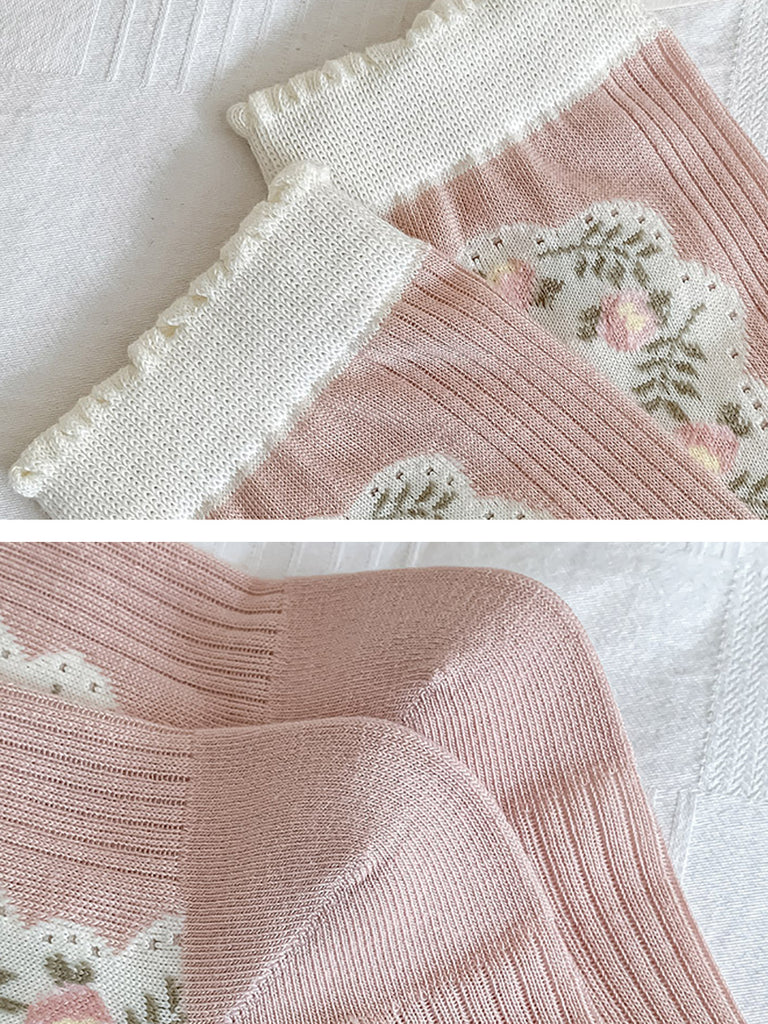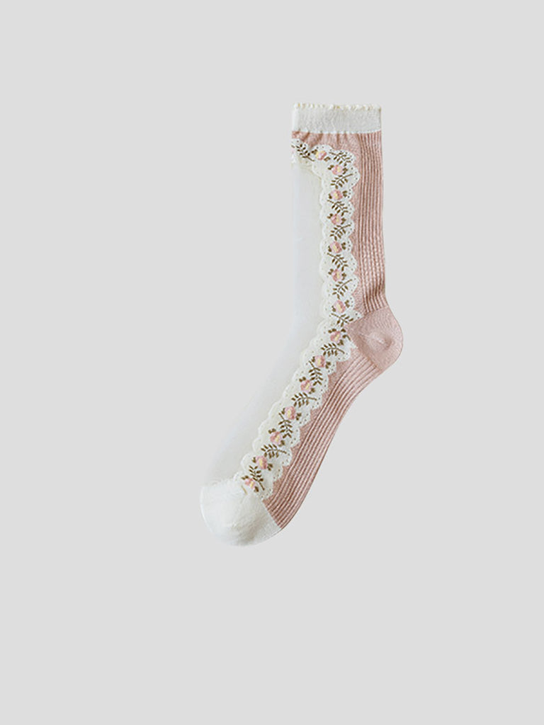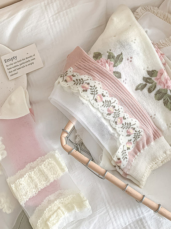 3 pares de calcetines finos con encaje floral elegante para mujer