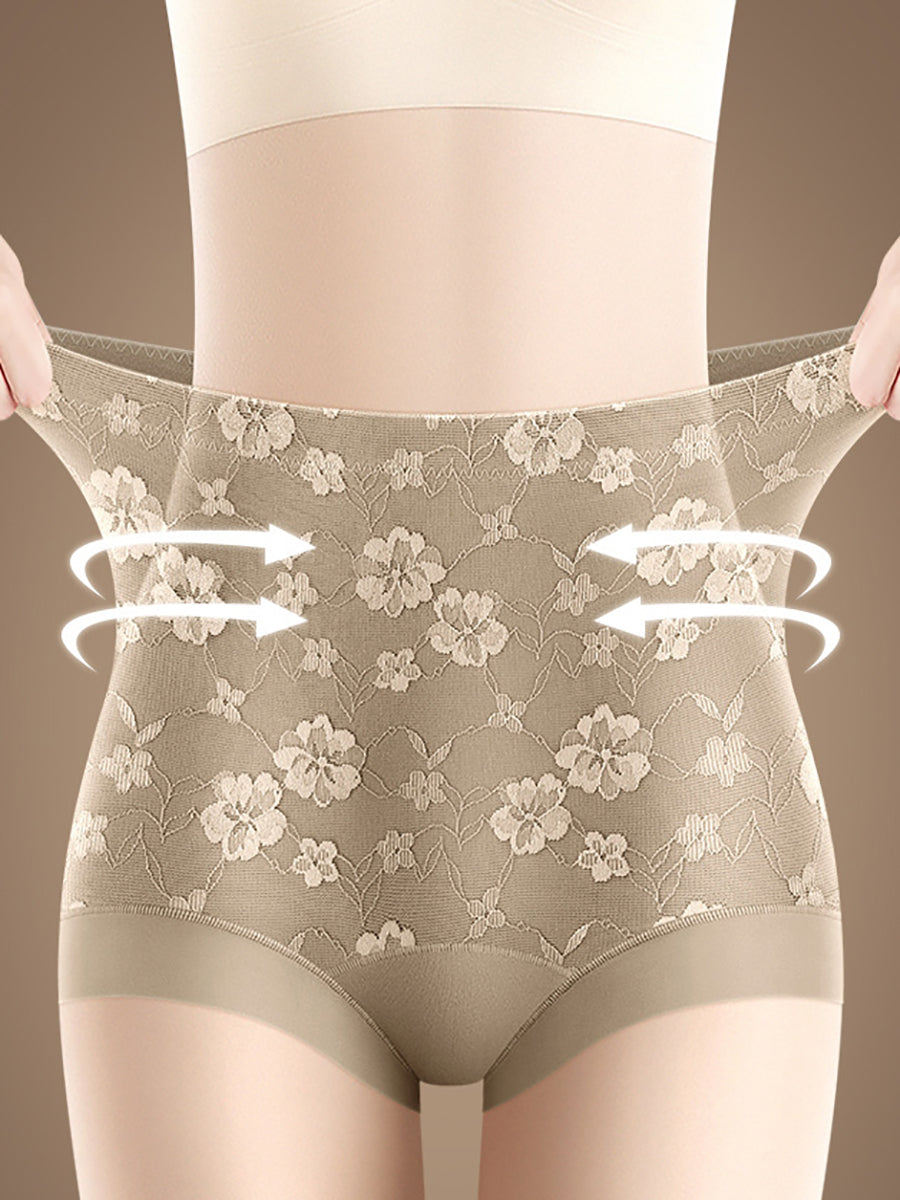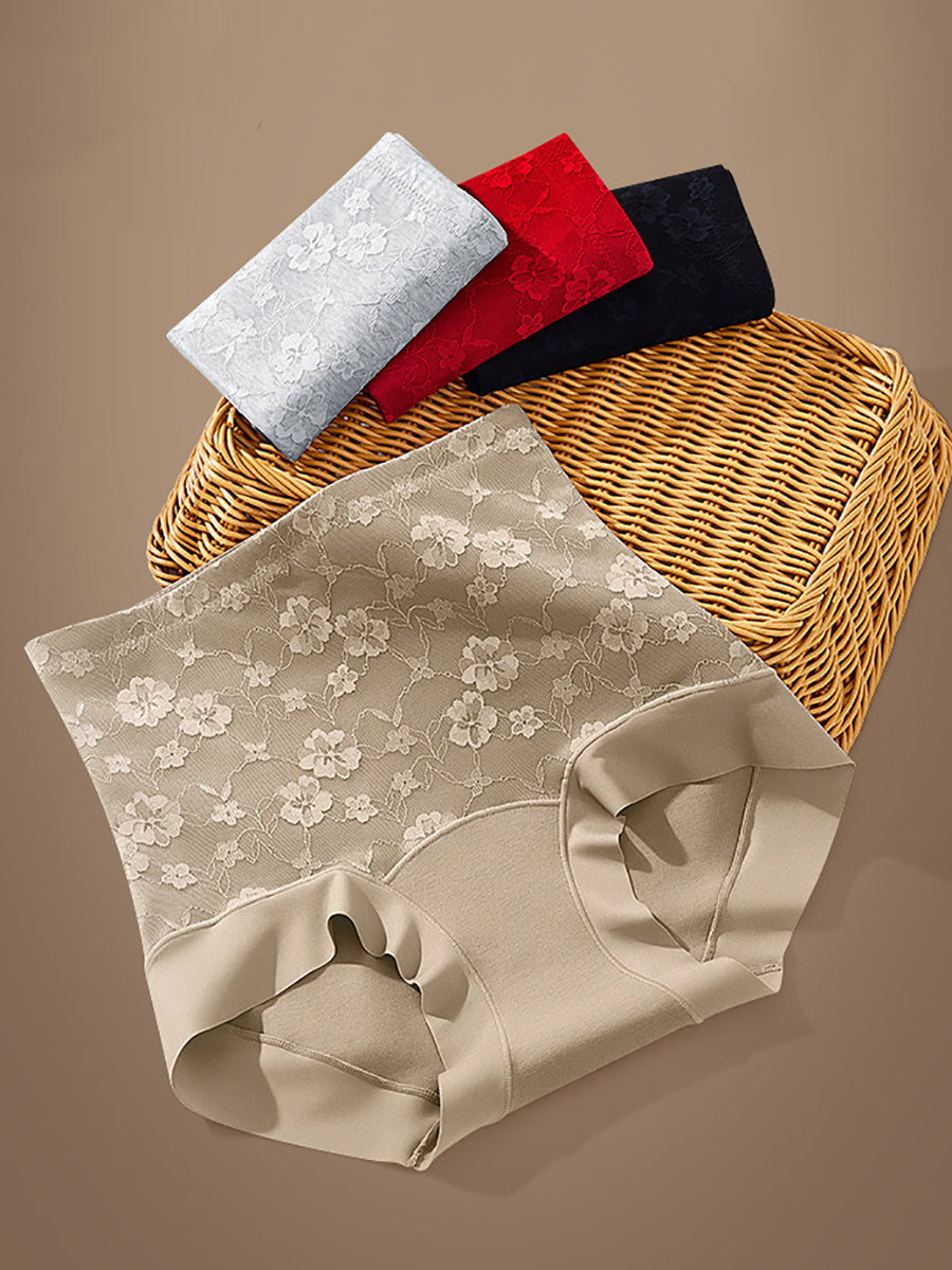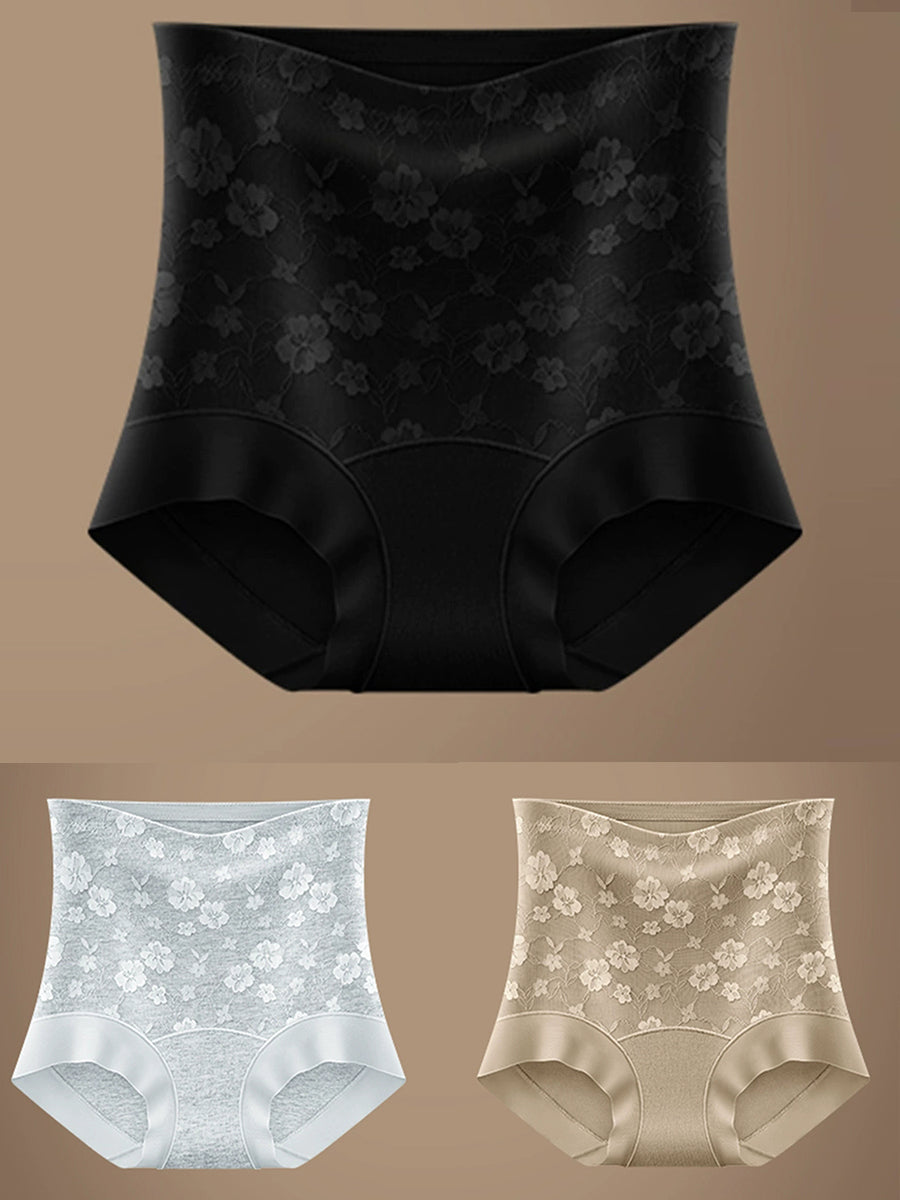 3 piezas de ropa interior de cintura alta con estampado floral artístico para mujer