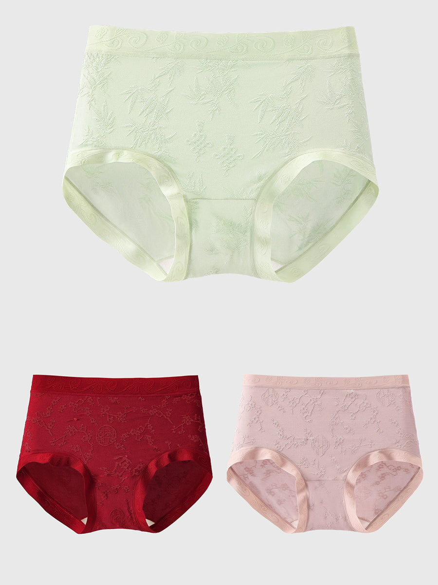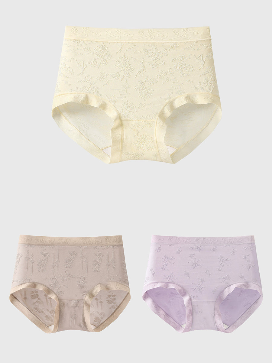 3 piezas de ropa interior de cintura alta de jacquard artístico para mujer