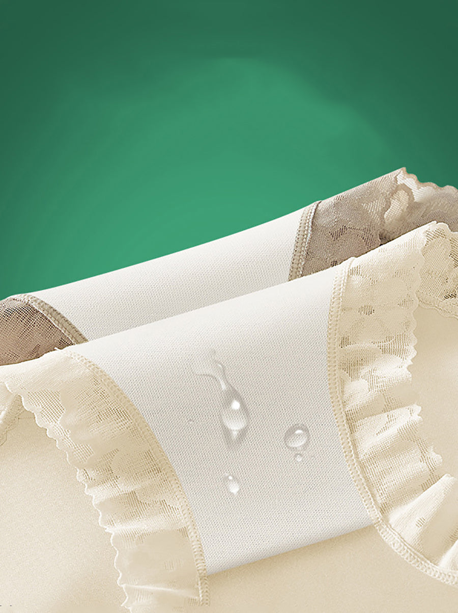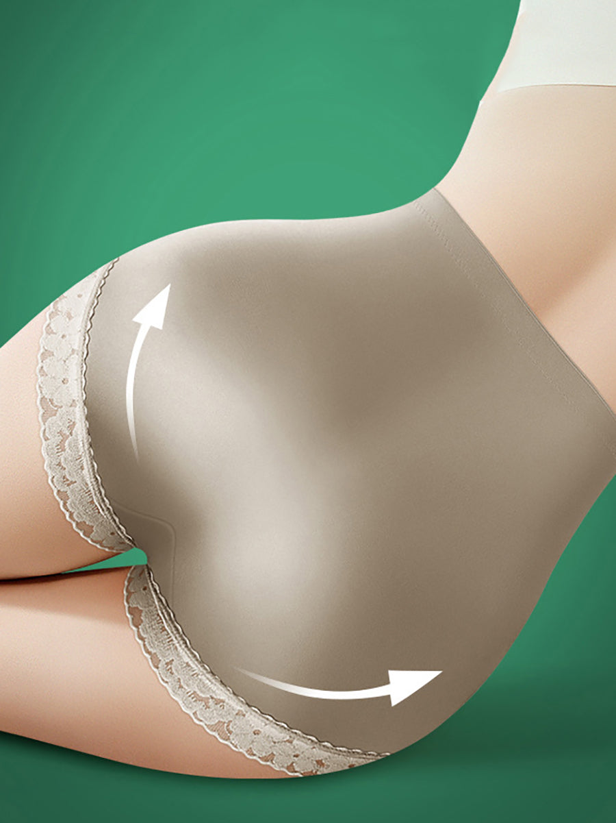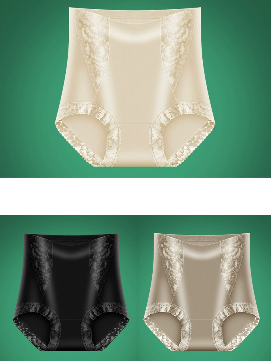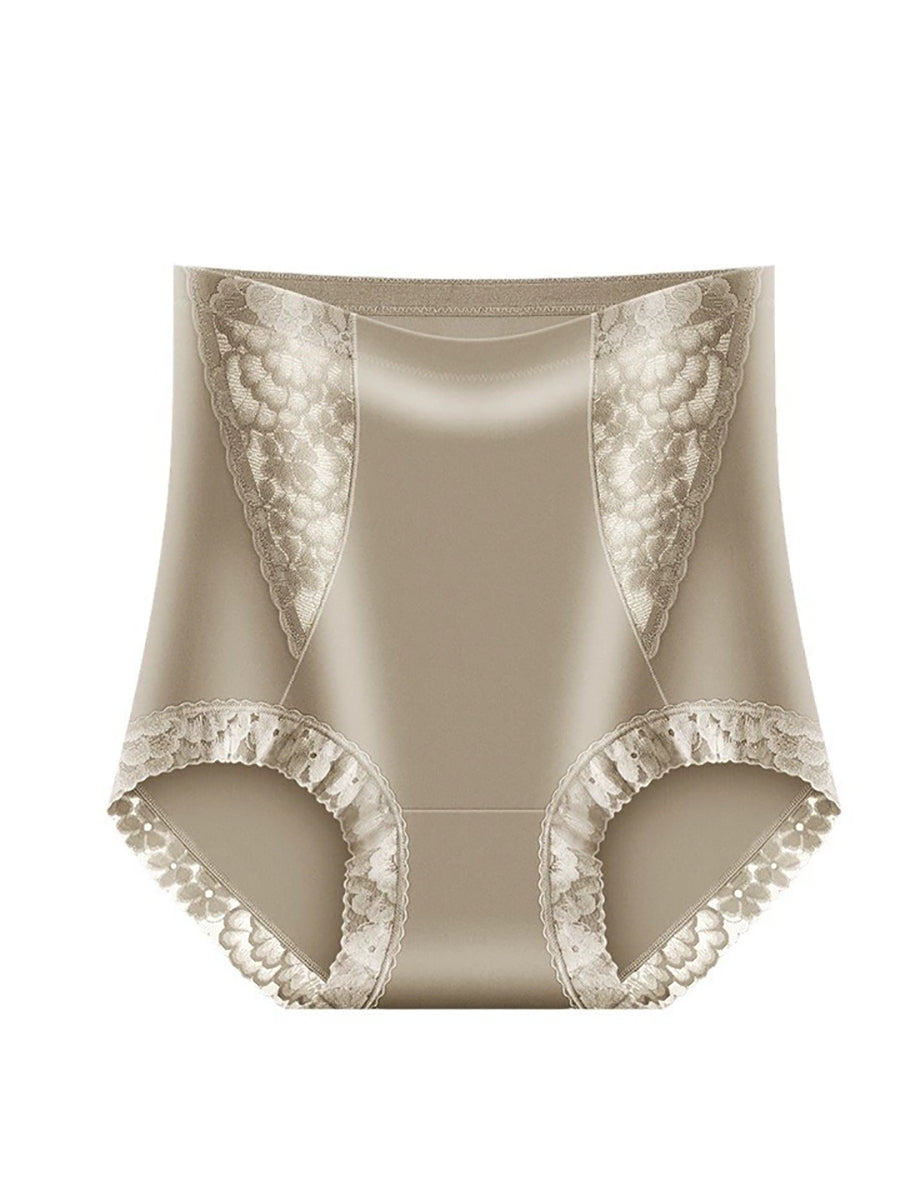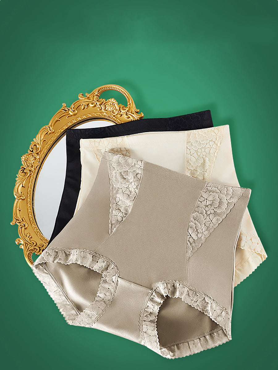 3 piezas de ropa interior de cintura alta con encaje de color puro y artístico para mujer