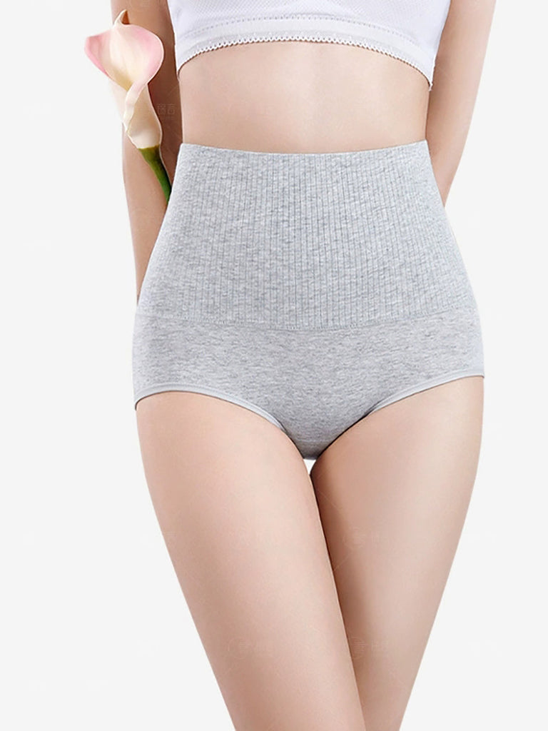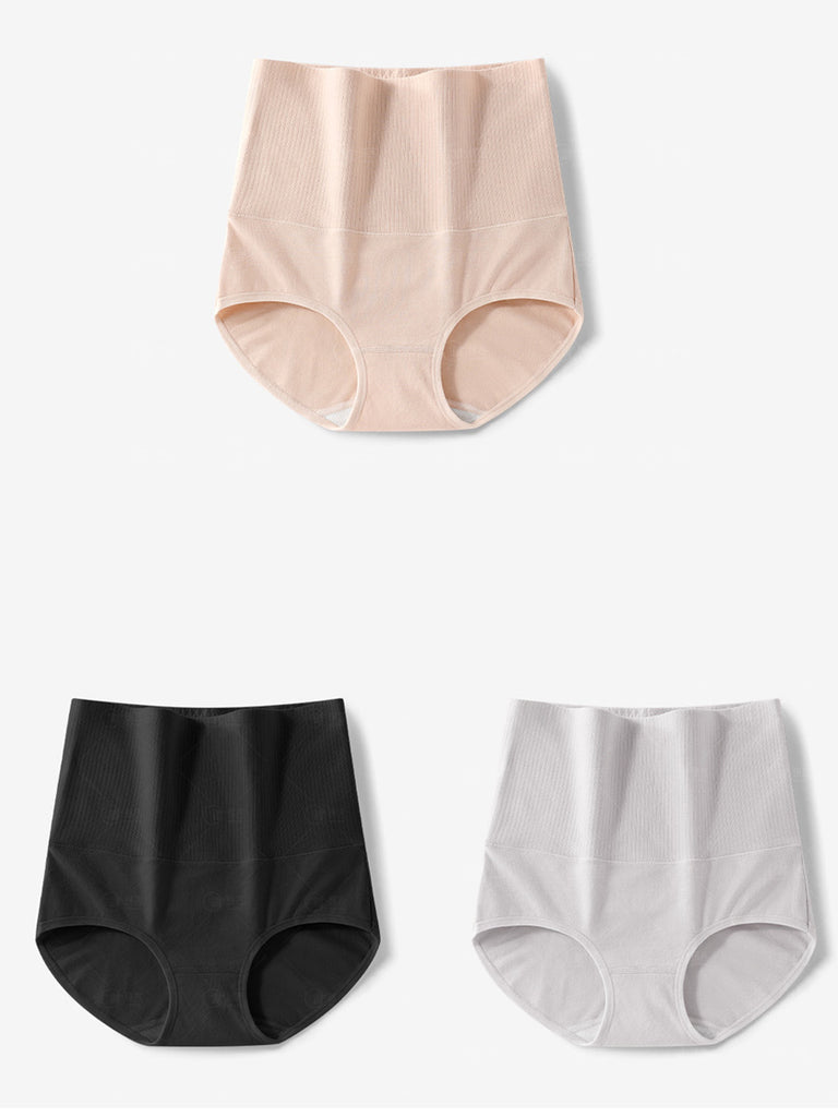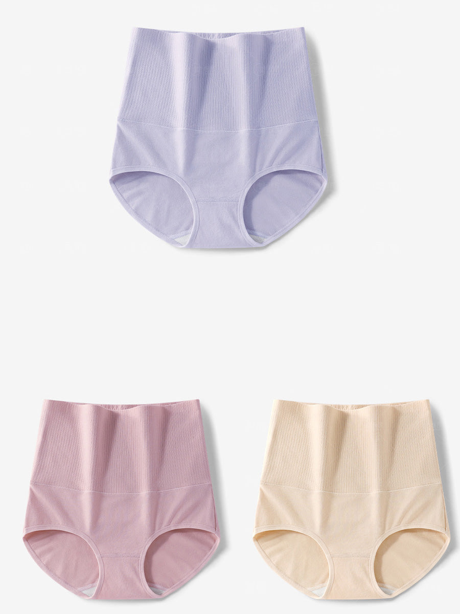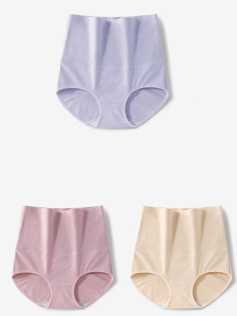 3 piezas de ropa interior de algodón de cintura alta de color puro para mujer