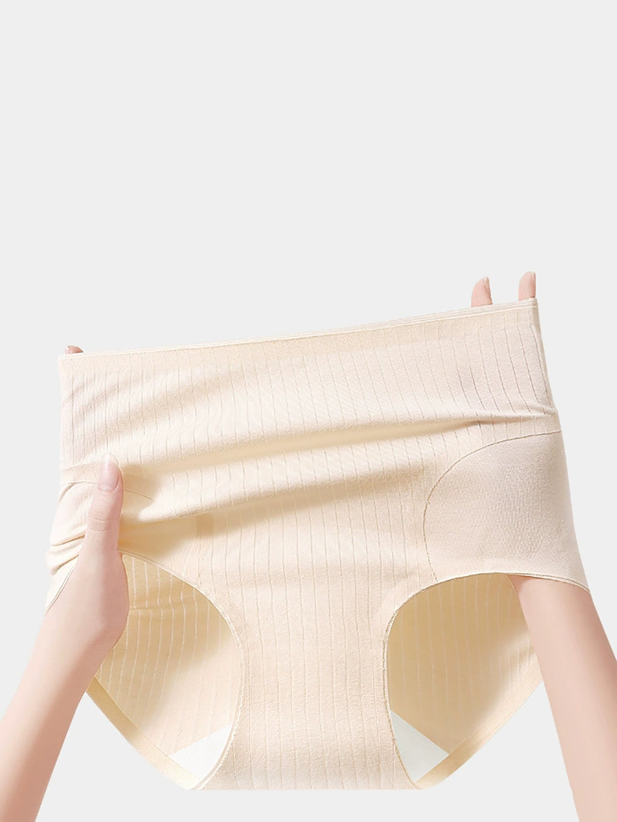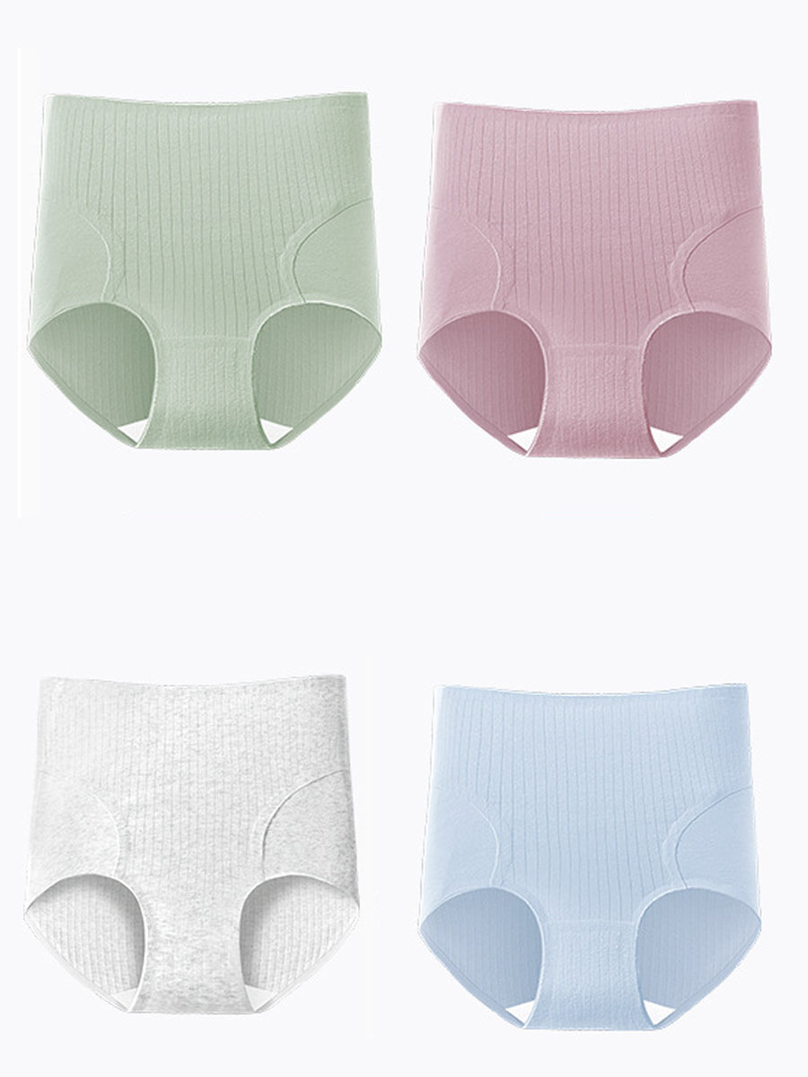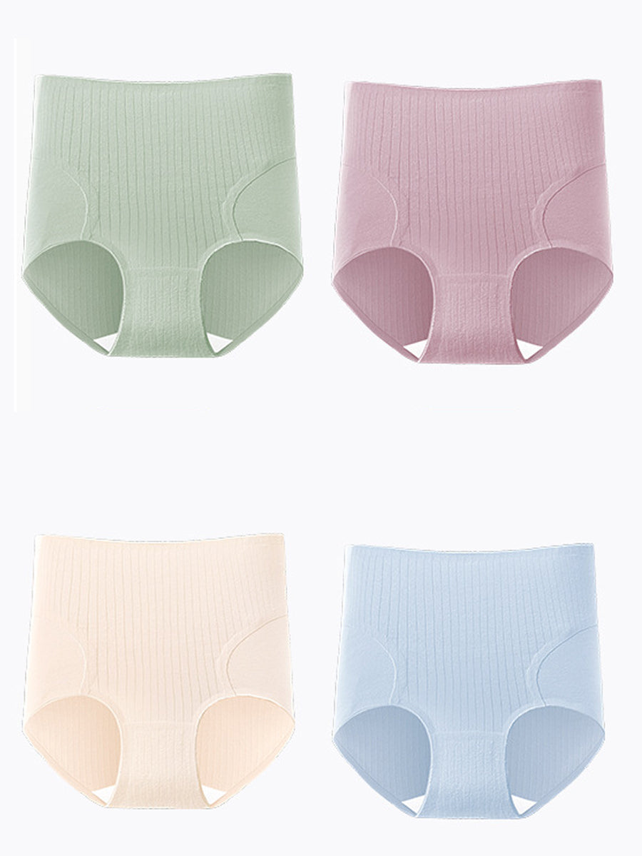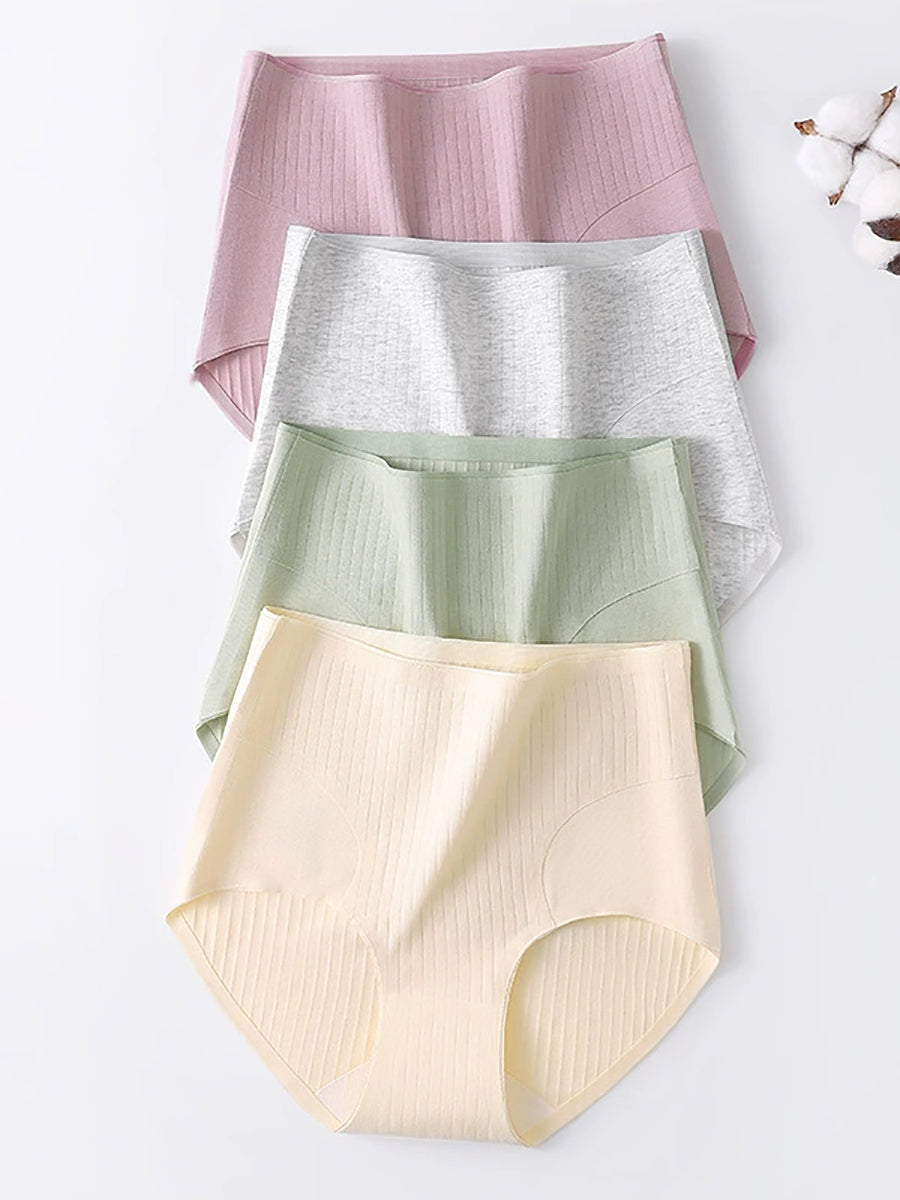 4 piezas de ropa interior de cintura alta de color puro y artístico para mujer