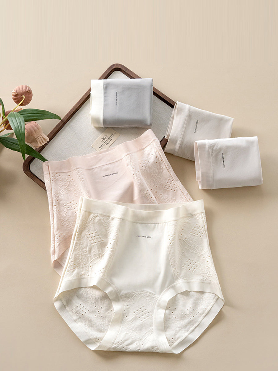4 piezas de ropa interior informal de cintura alta de jacquard para mujer