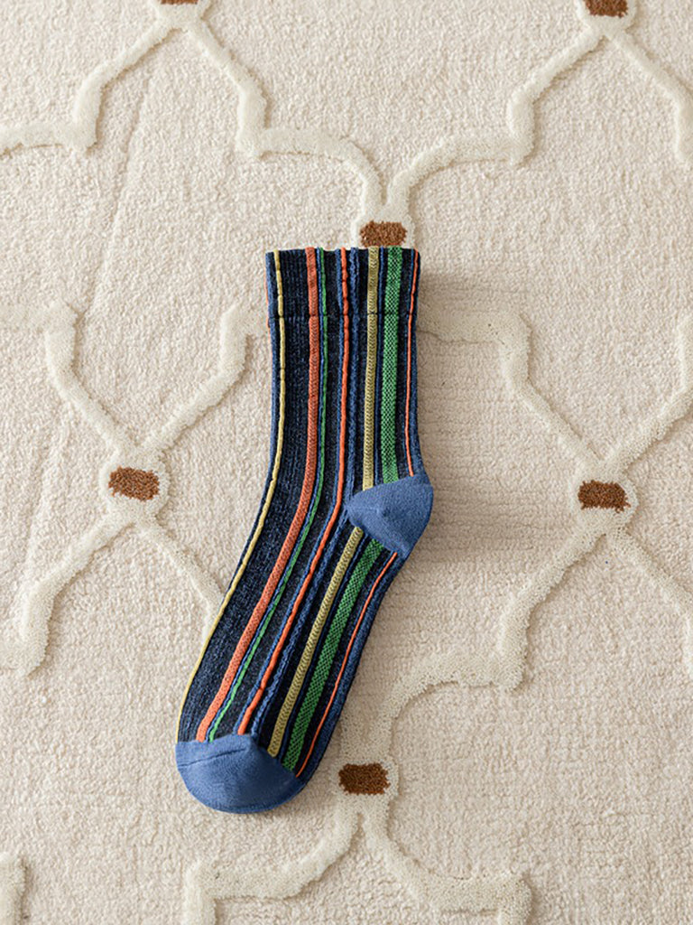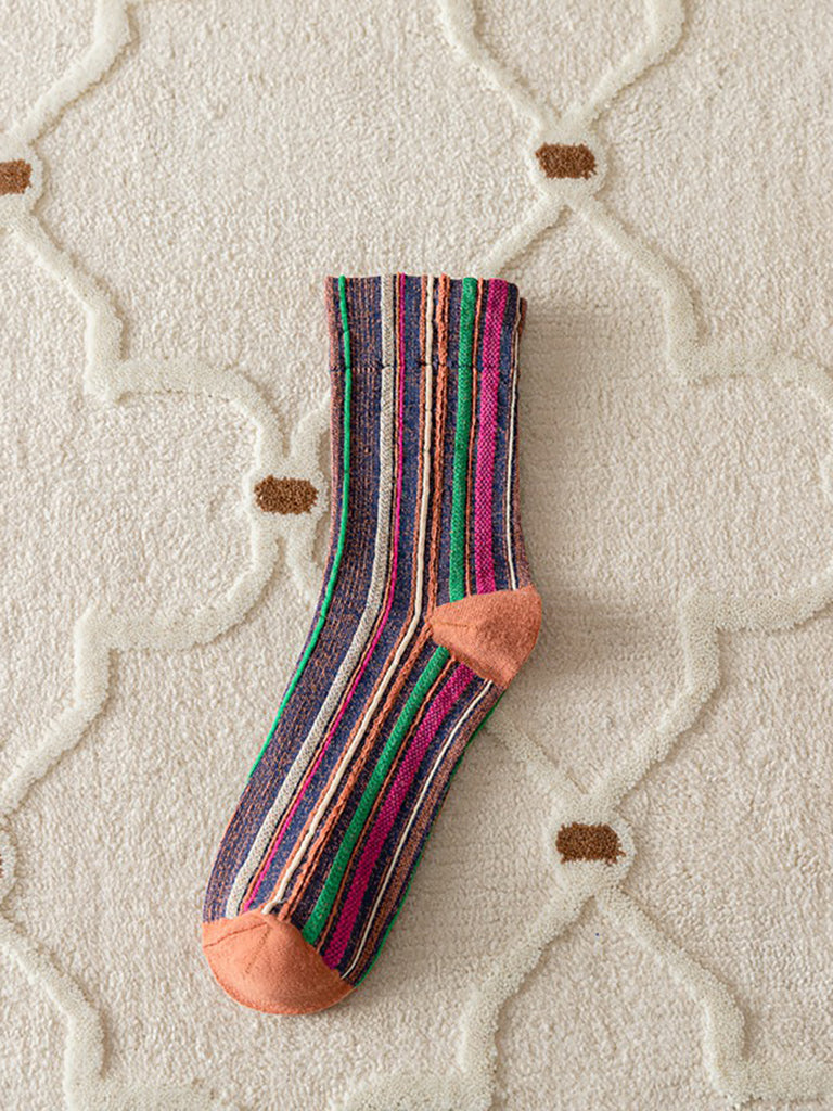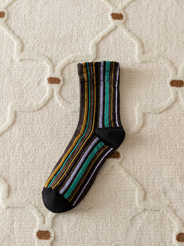5 pares de calcetines retro de otoño e invierno para mujer adulta a rayas