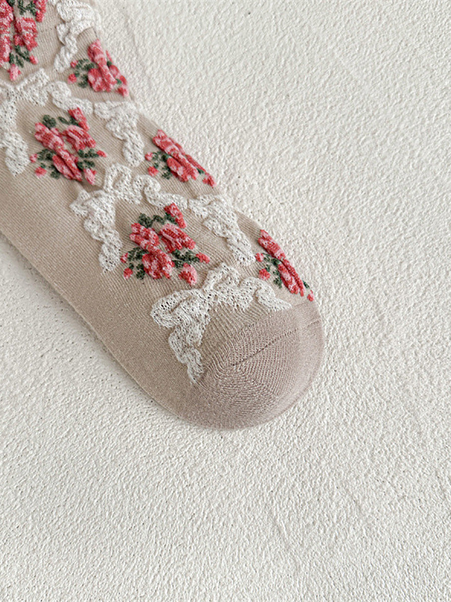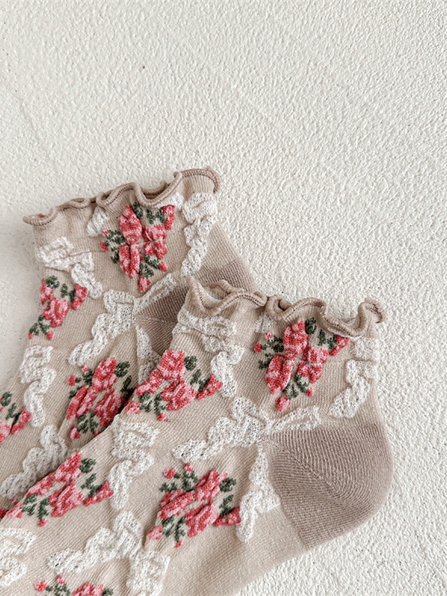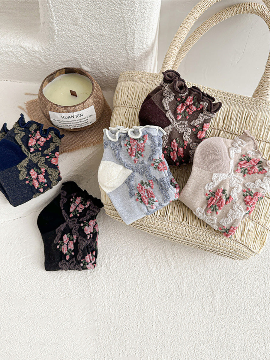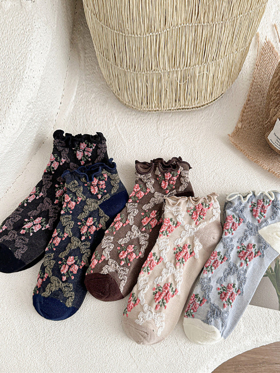 5 pares de calcetines de jacquard con flores artísticas para mujer