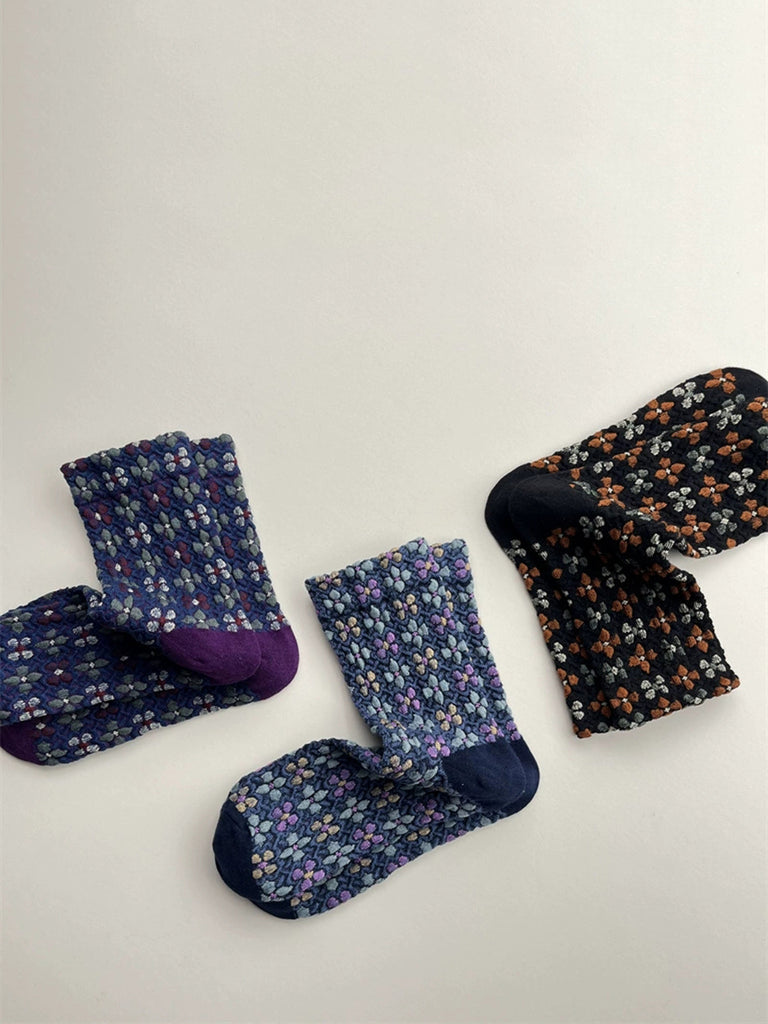 5 pares de calcetines jacquard florales artísticos de otoño para mujer