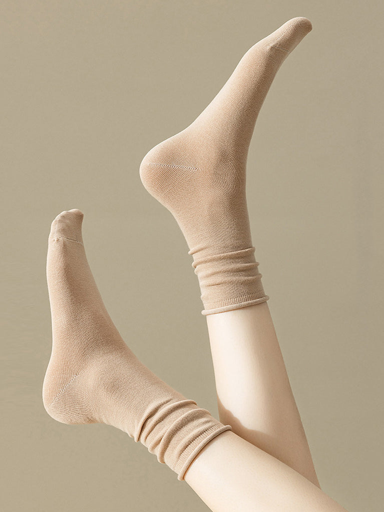 5 pares de calcetines casuales de algodón liso hasta la mitad de la pierna para mujer