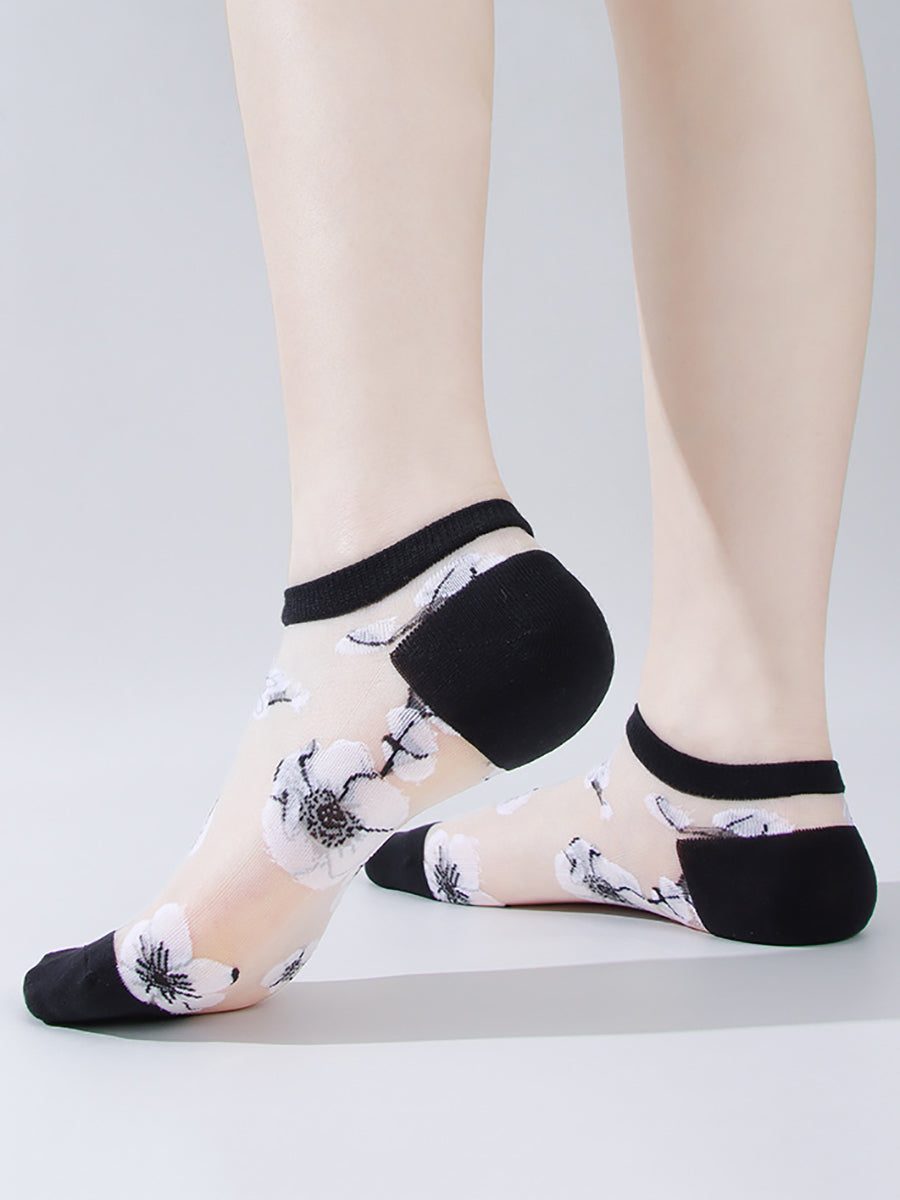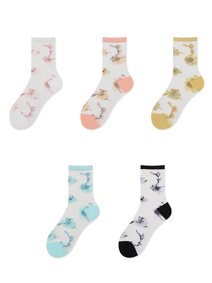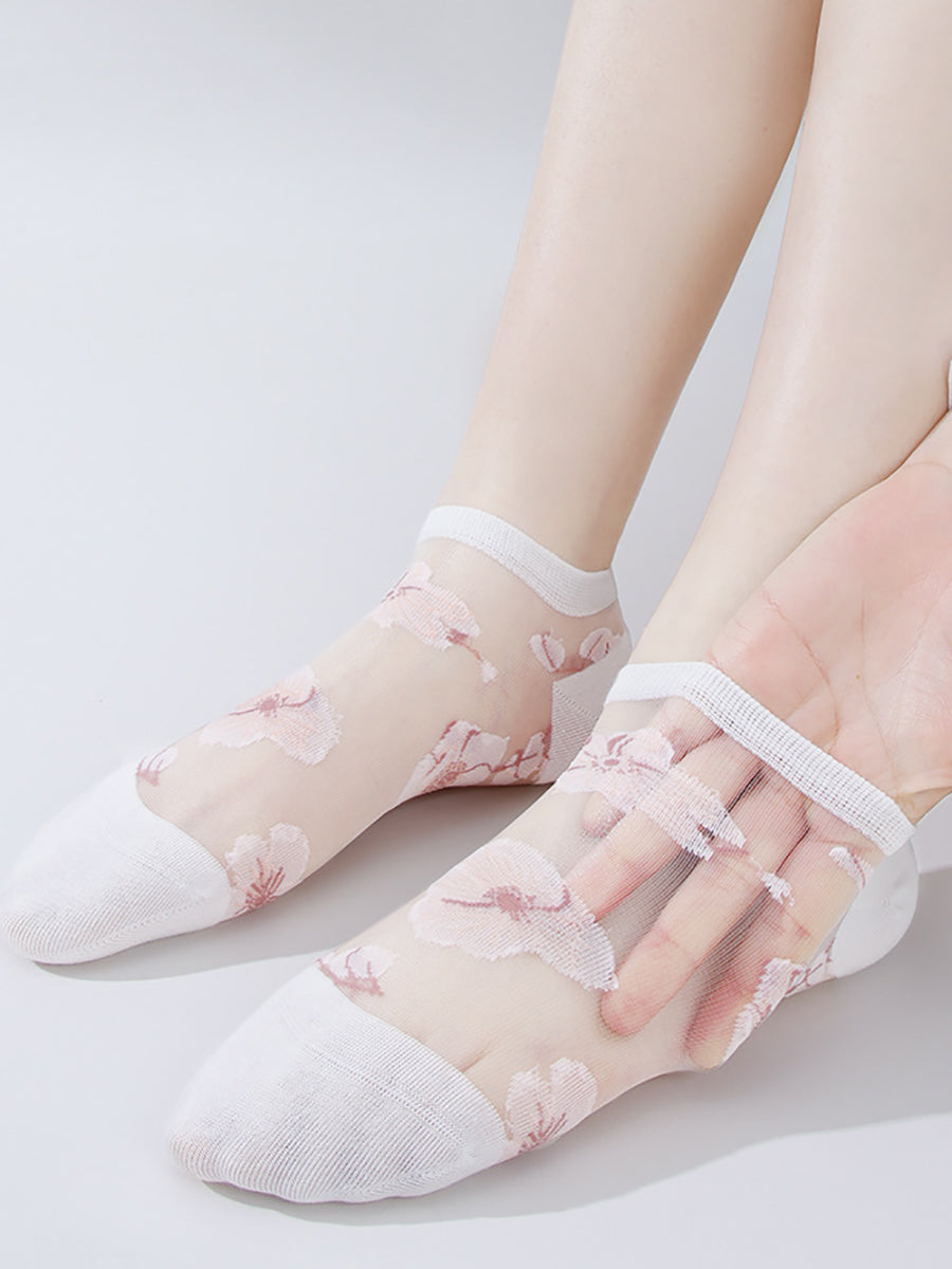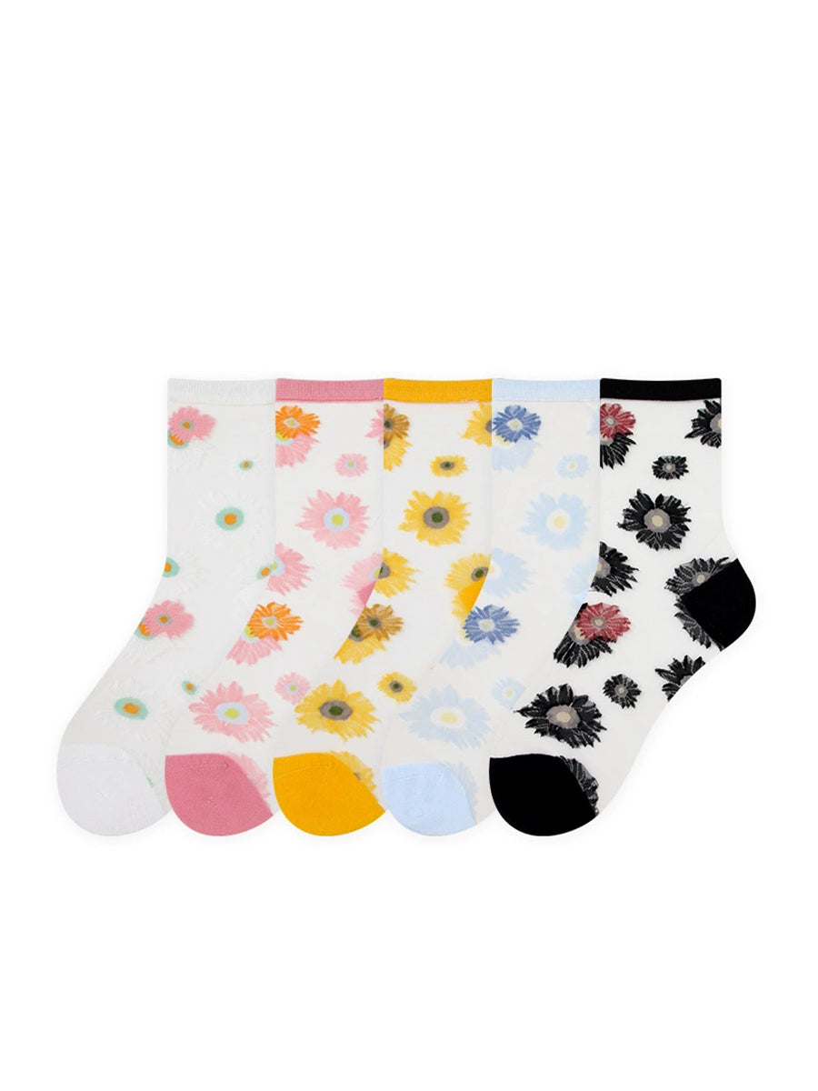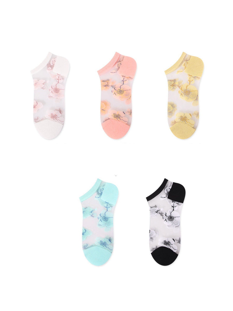 5 pares de calcetines finos de verano con flores artísticas para mujer