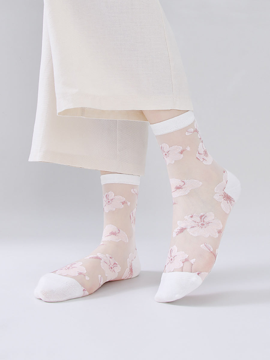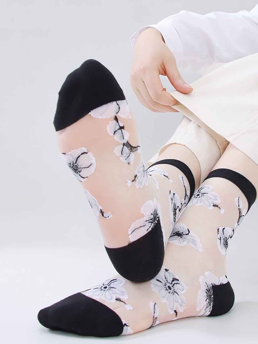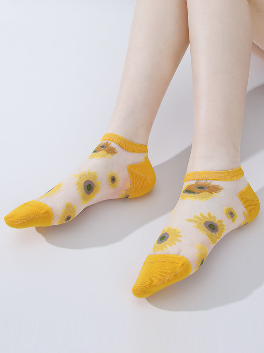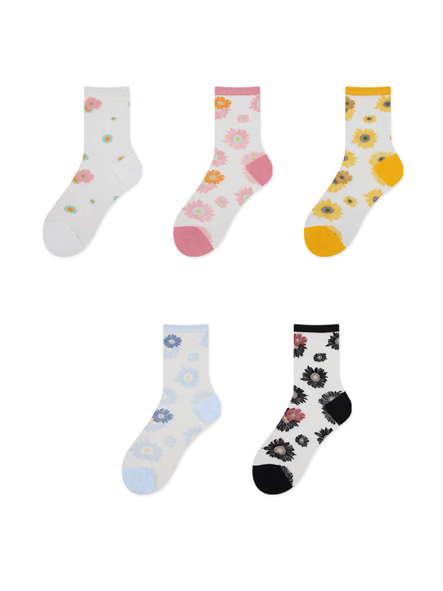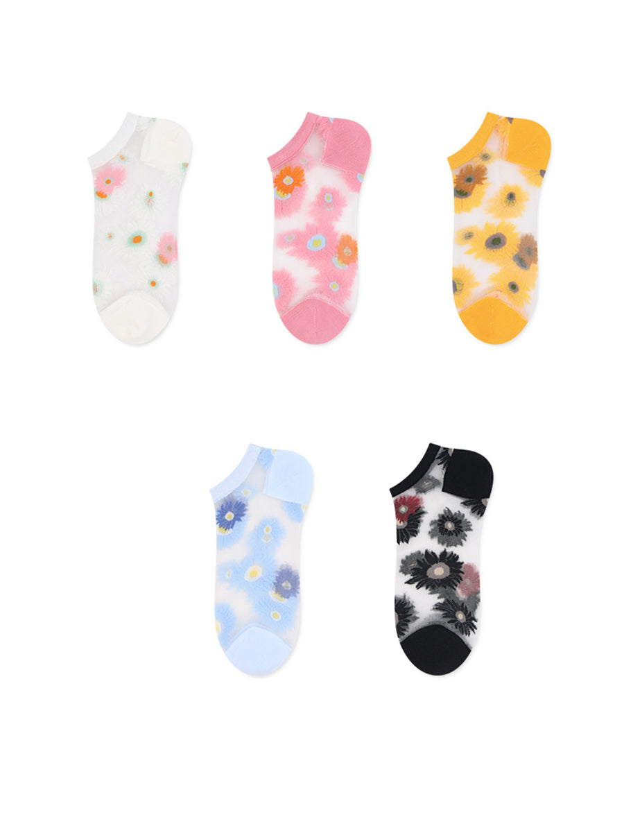 5 pares de calcetines finos de verano con flores artísticas para mujer