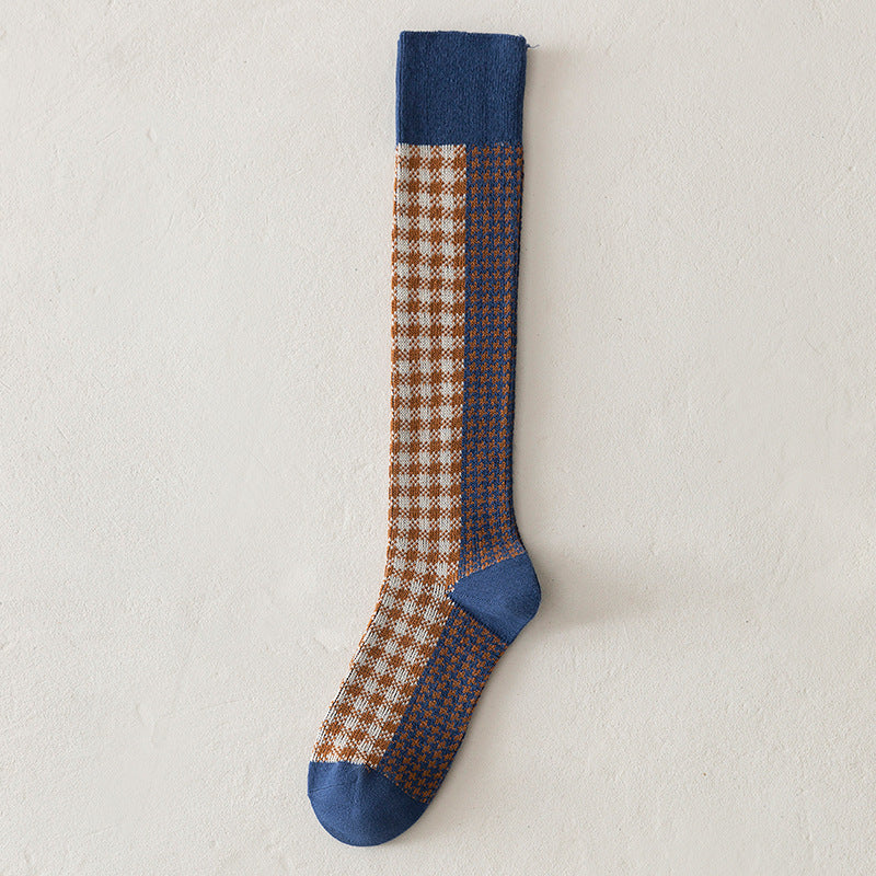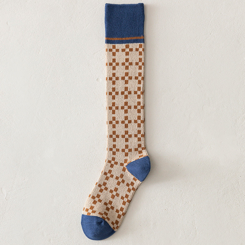 5 pares de calcetines largos cálidos a cuadros vintage para mujer