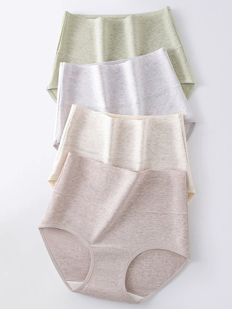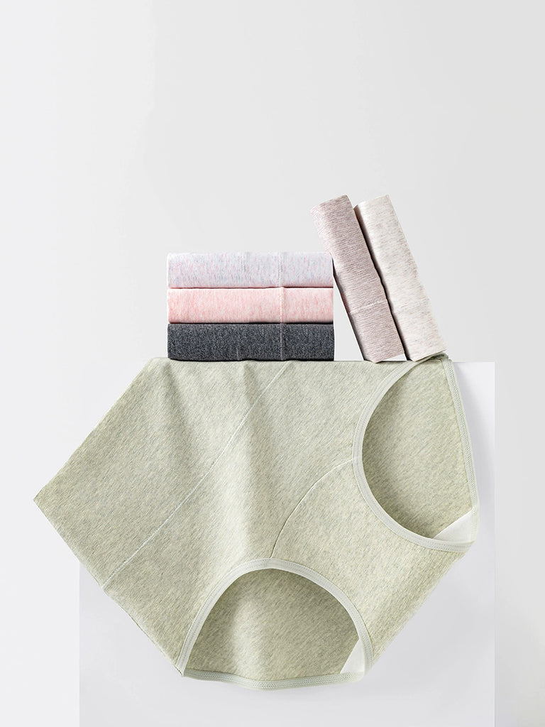 5 piezas de ropa interior casual de cintura alta de color puro para mujer