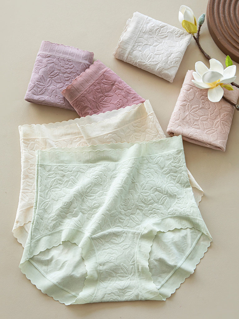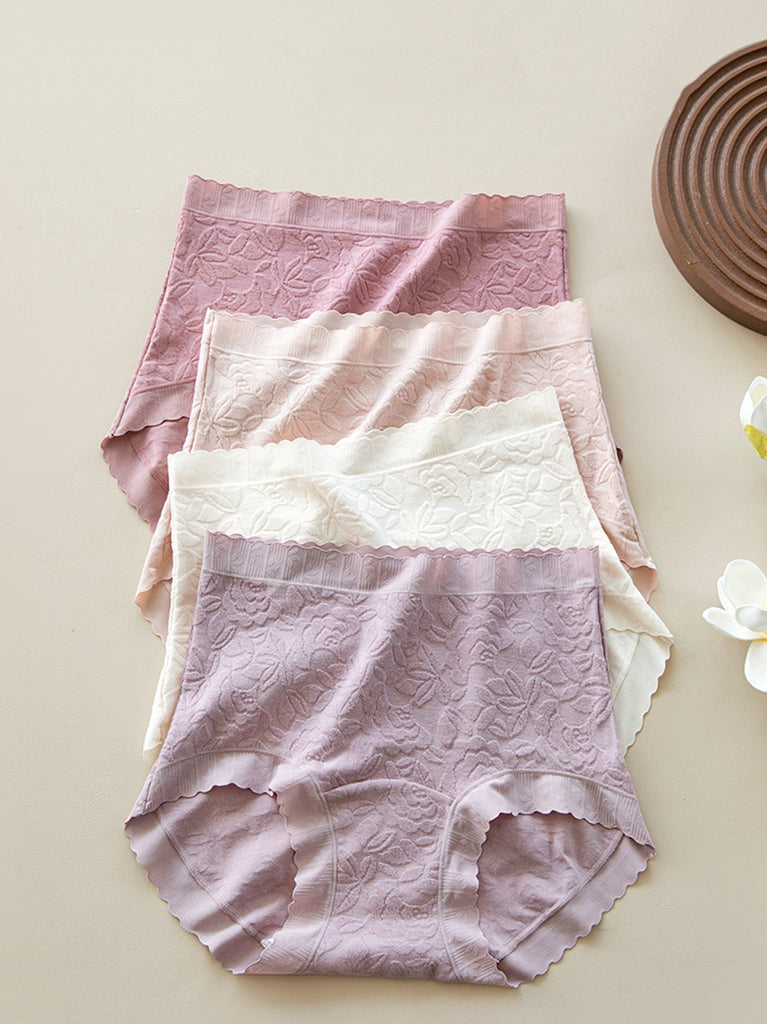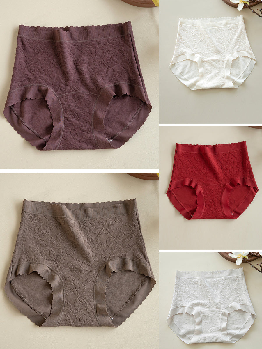 5 piezas de ropa interior de algodón de cintura alta con estampado floral de jacquard para mujer