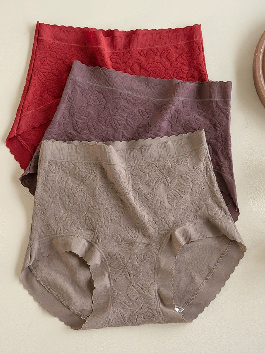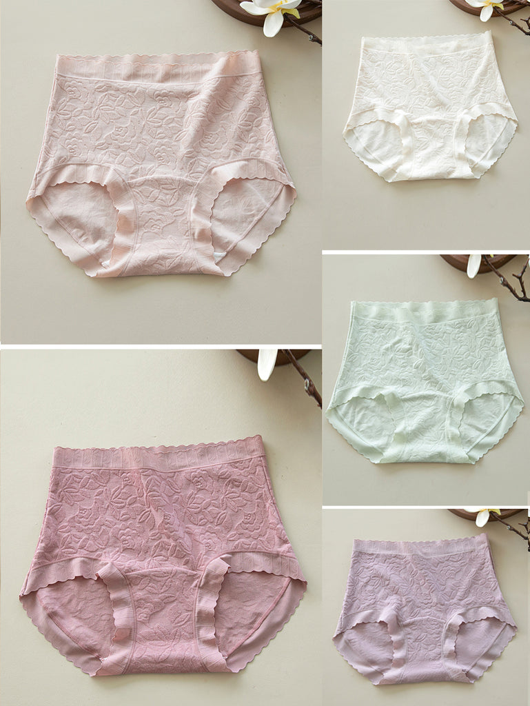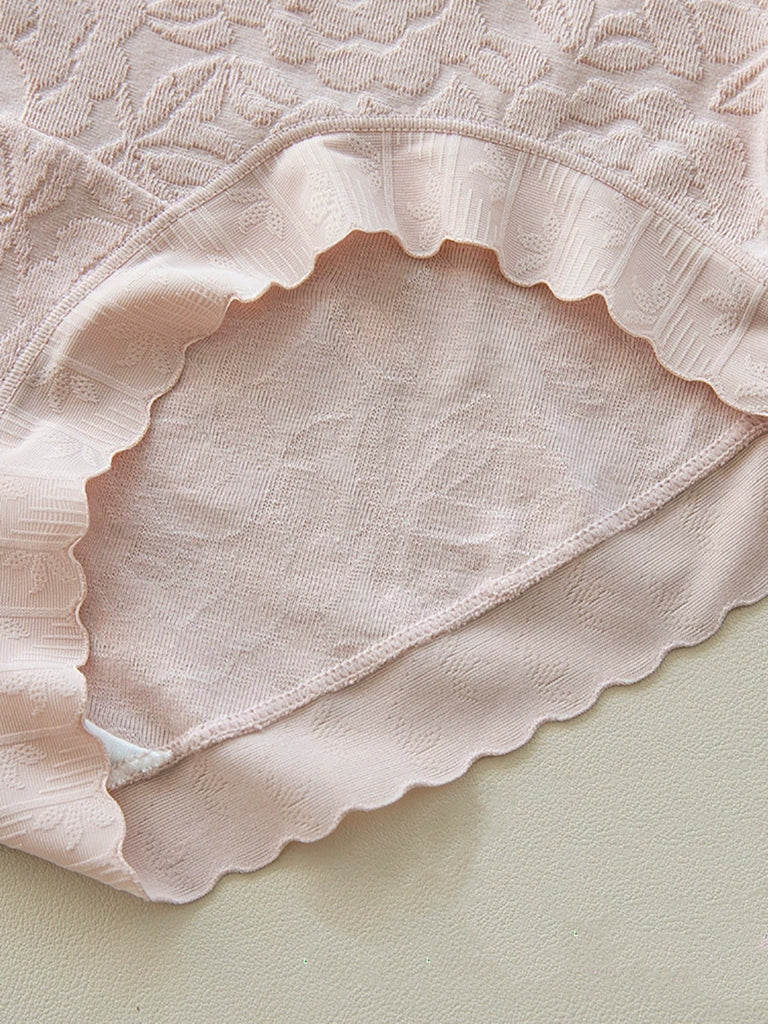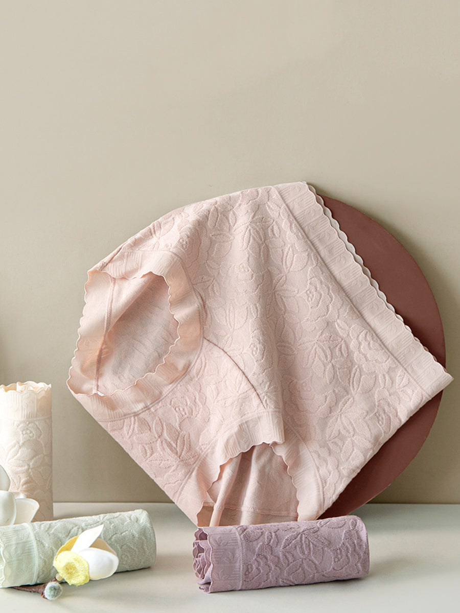 5 piezas de ropa interior de algodón de cintura alta con estampado floral de jacquard para mujer