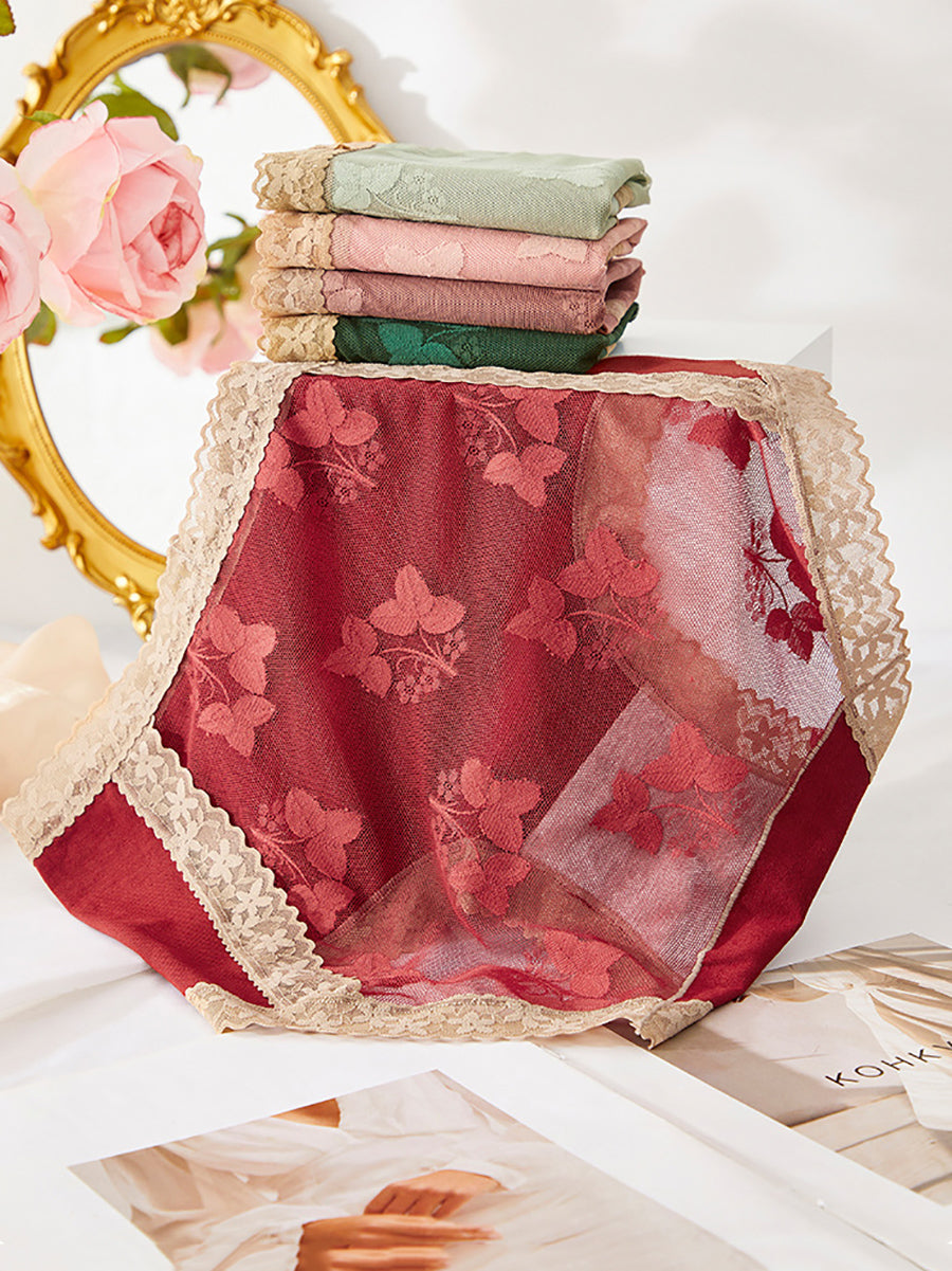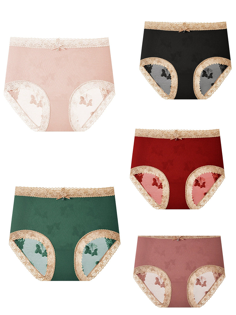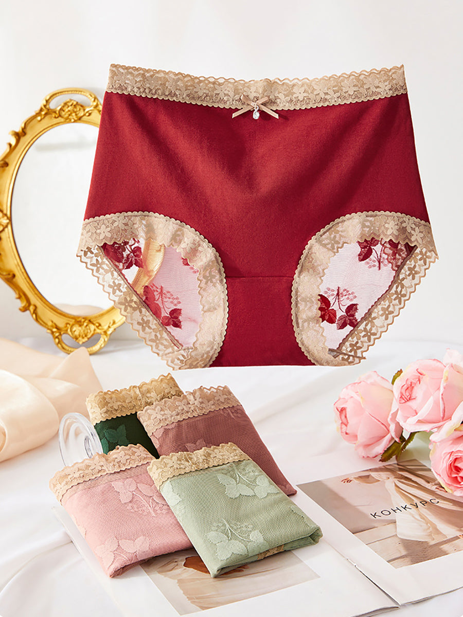 5 piezas de ropa interior de cintura alta con encaje floral para mujer