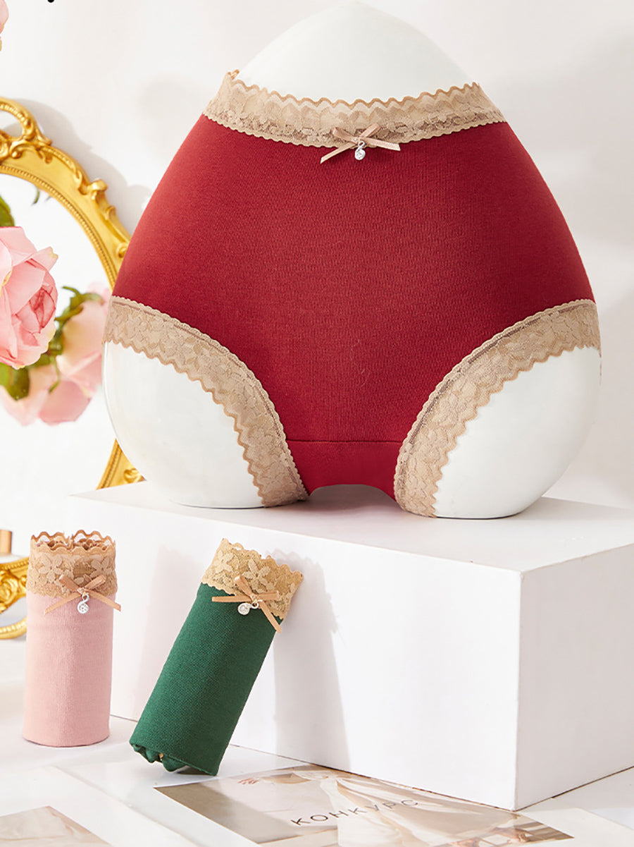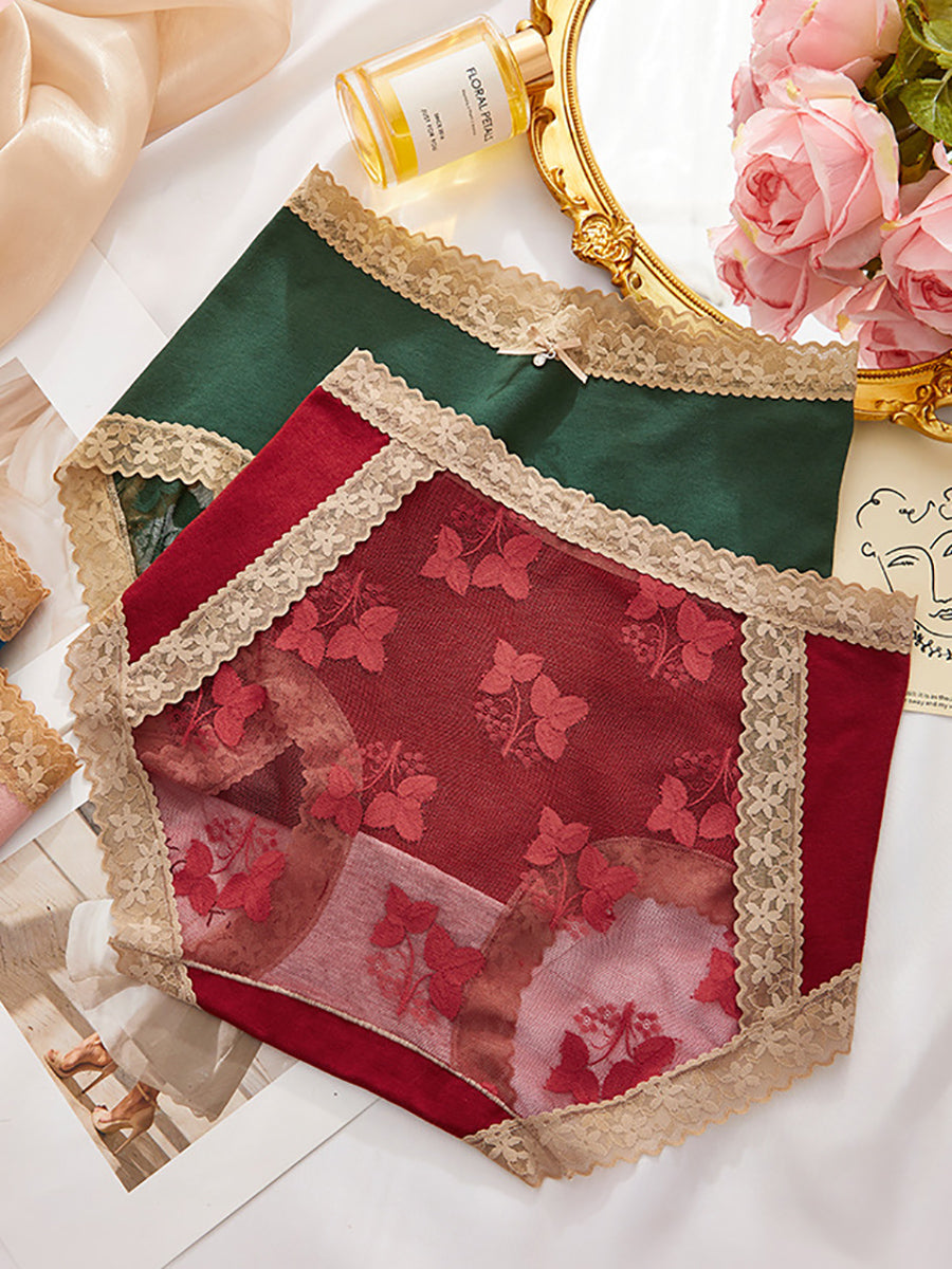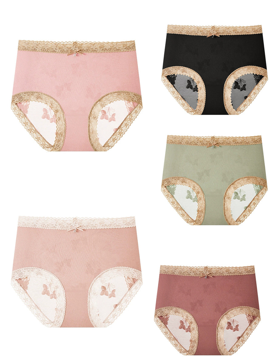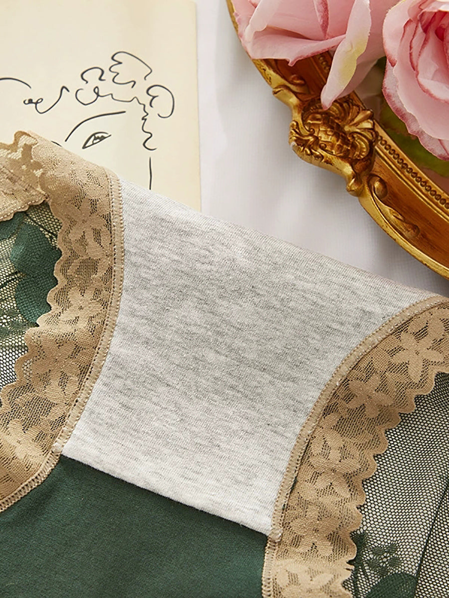 5 piezas de ropa interior de cintura alta con encaje floral para mujer