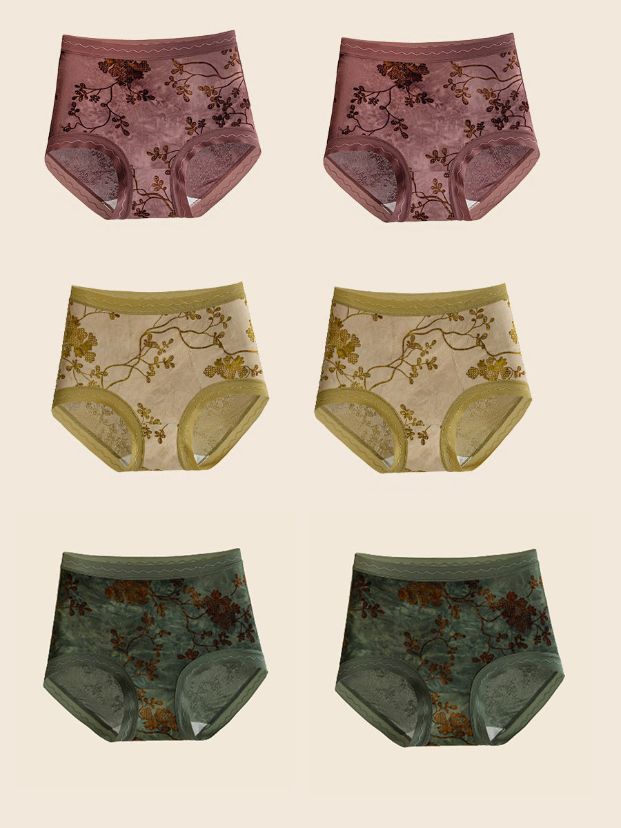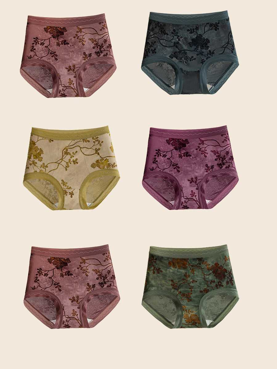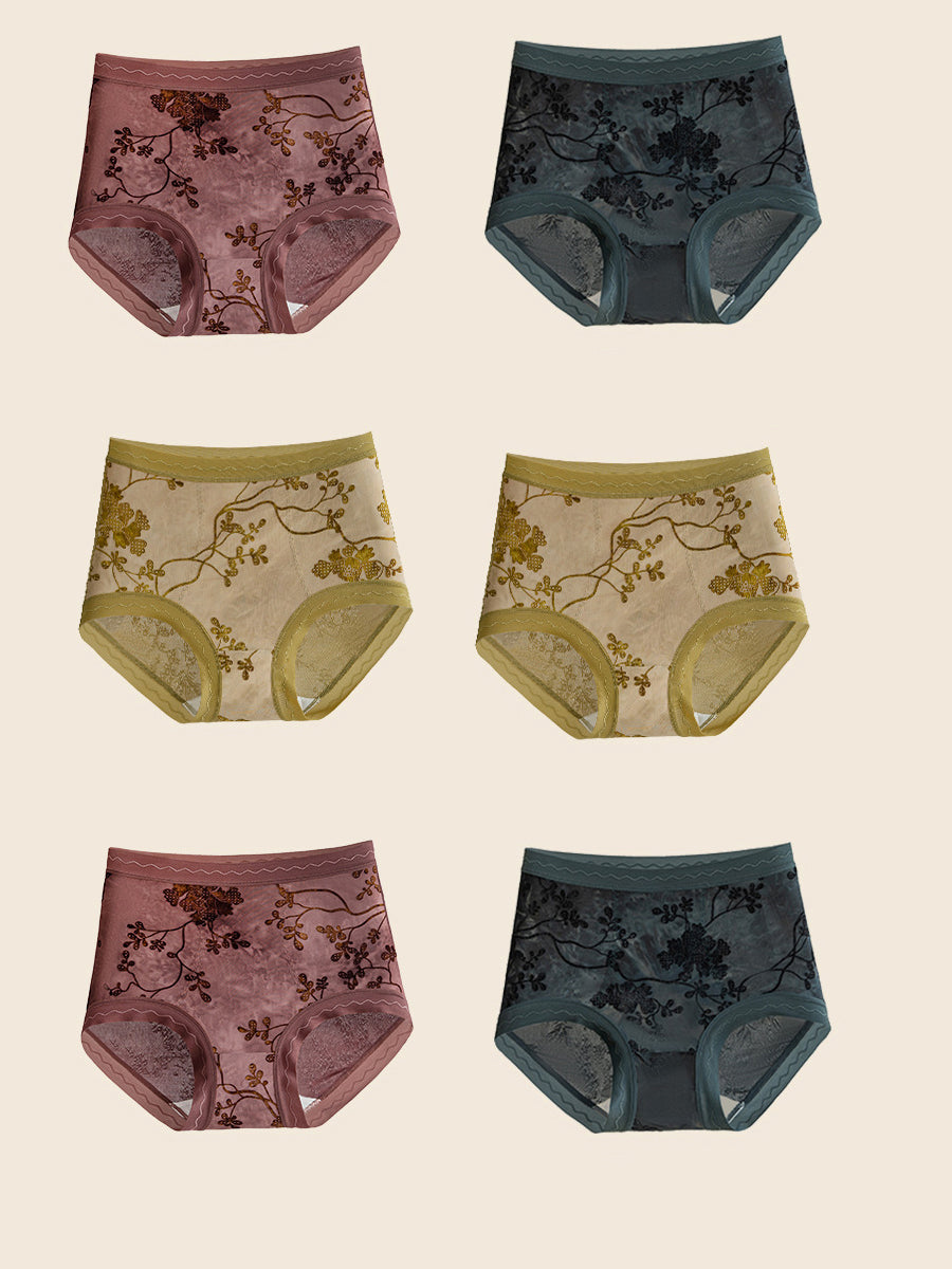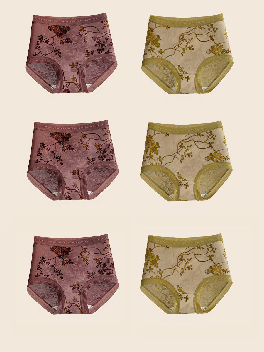6 piezas de ropa interior de cintura alta con estampado floral de jacquard para mujer