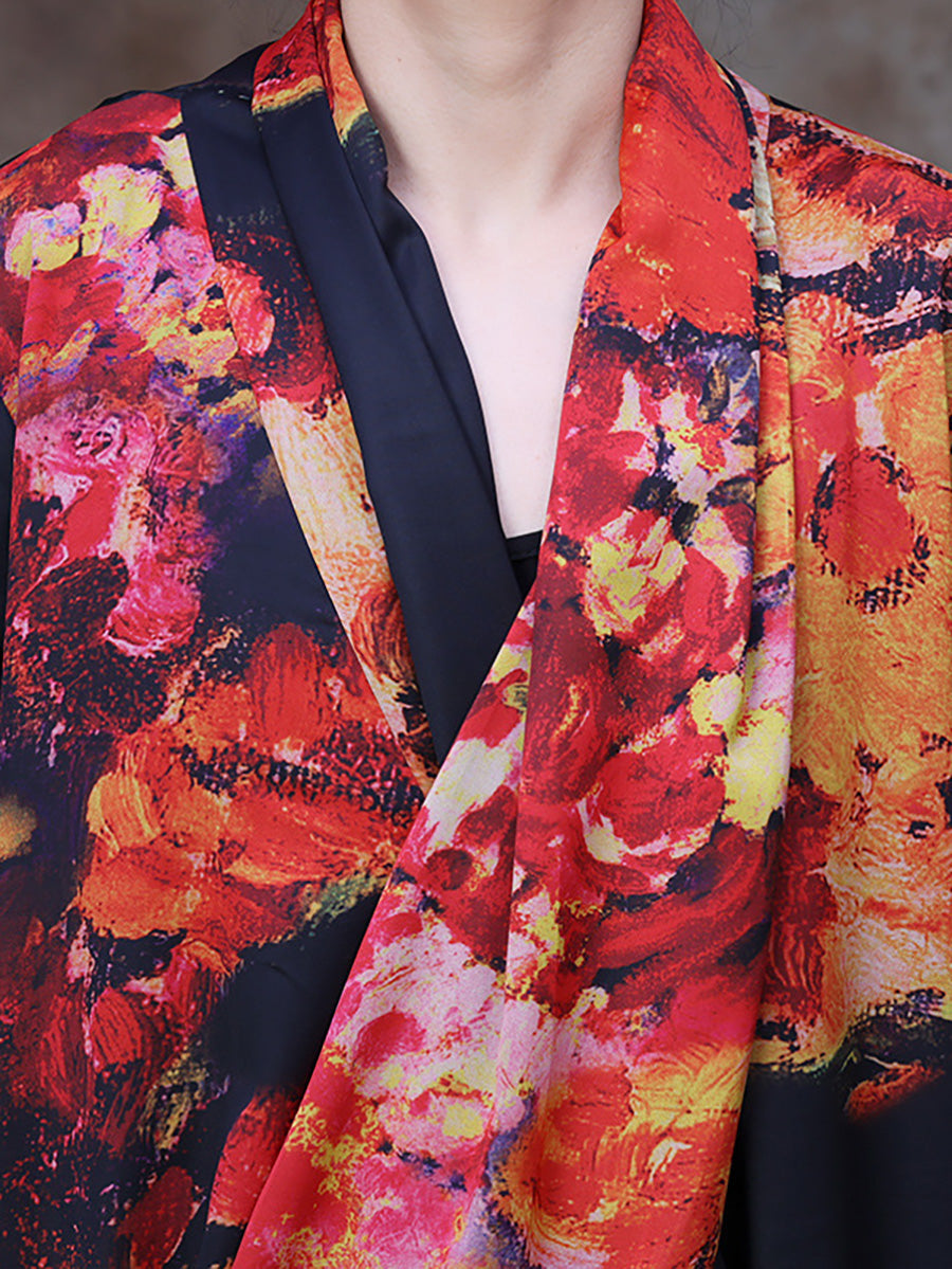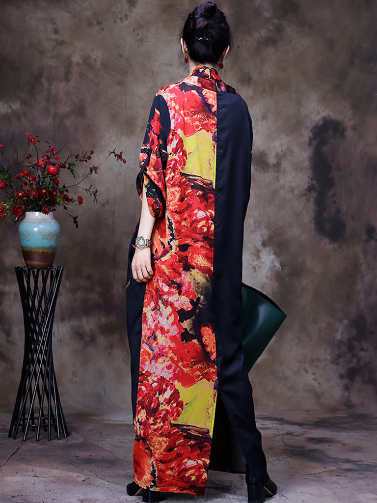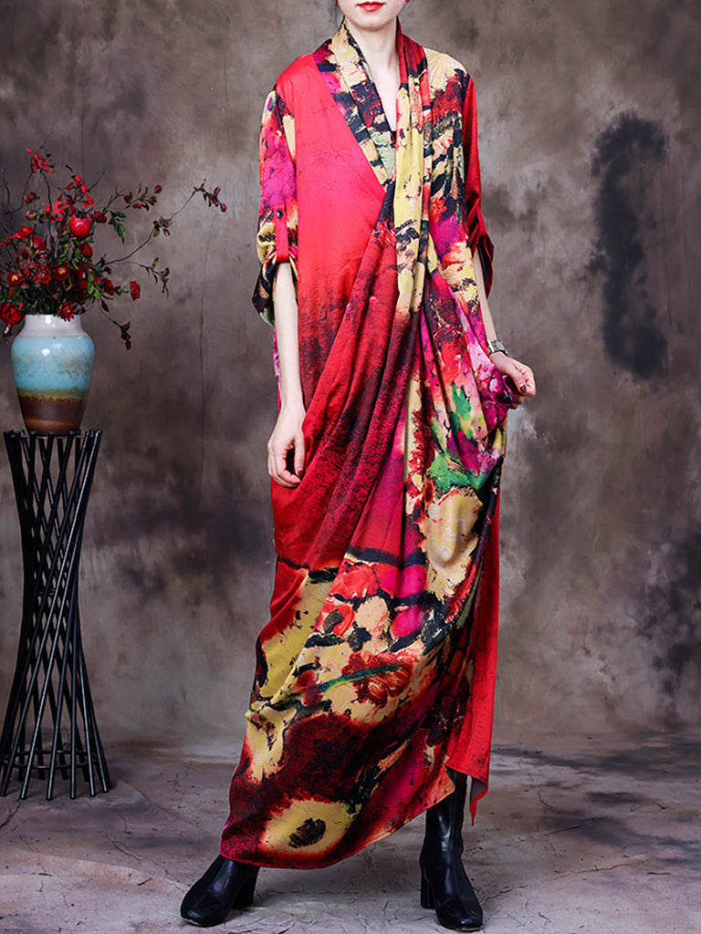 Vestido largo retro de mujer vintage floral drapeado de talla grande