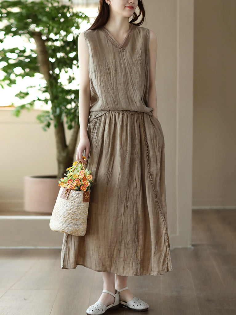 Tamaño de talla grande Vintage Solid 100%Ramie Suits