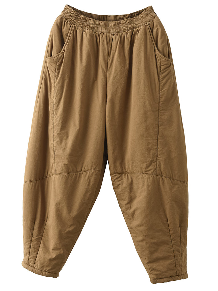 Pantalones Harem acolchados empalmados sólidos vintage de talla grande para mujer