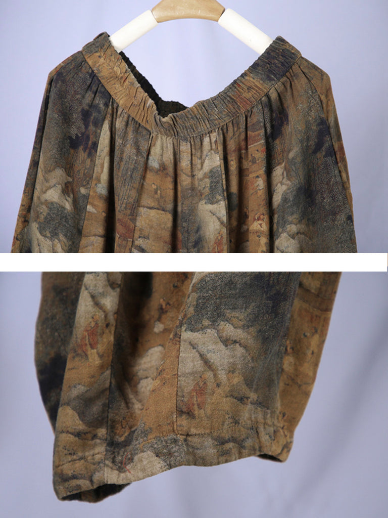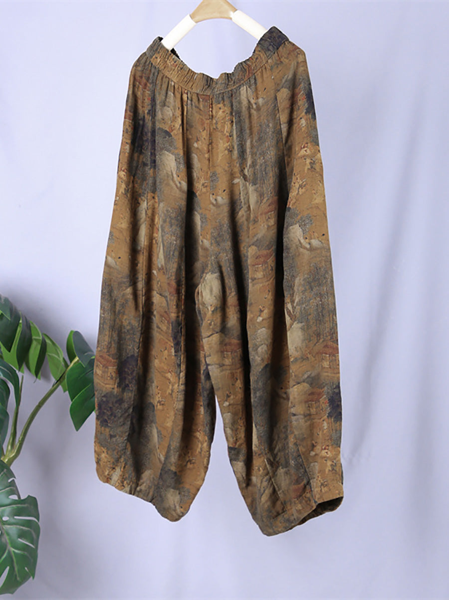 Pantalones harén con estampado de primavera vintage para mujer de talla grande