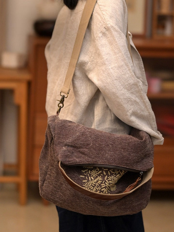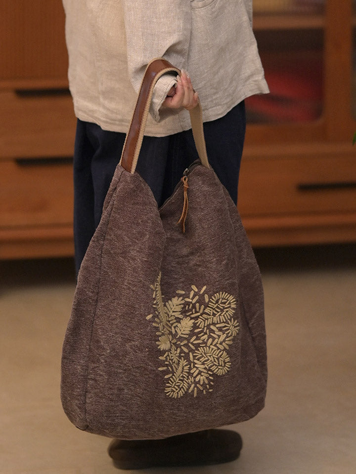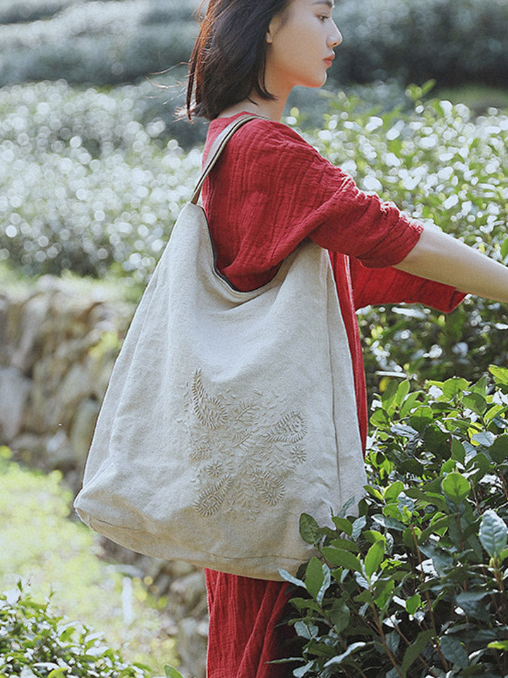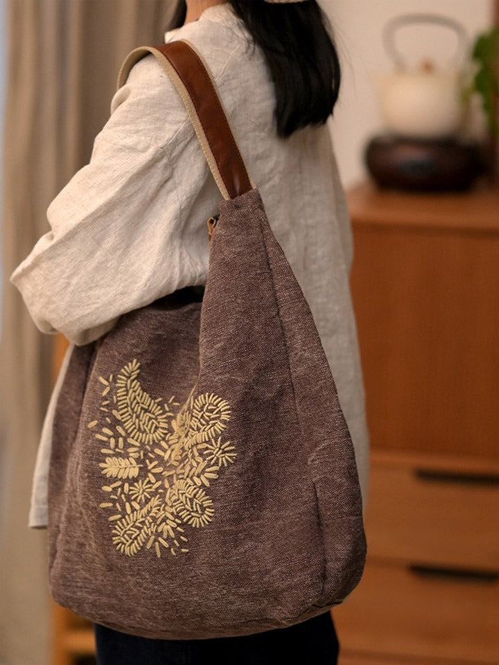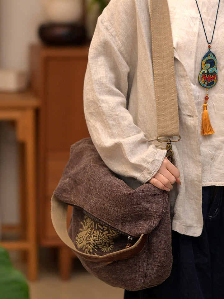 03047 Bolso de hombro retro con flores bordadas