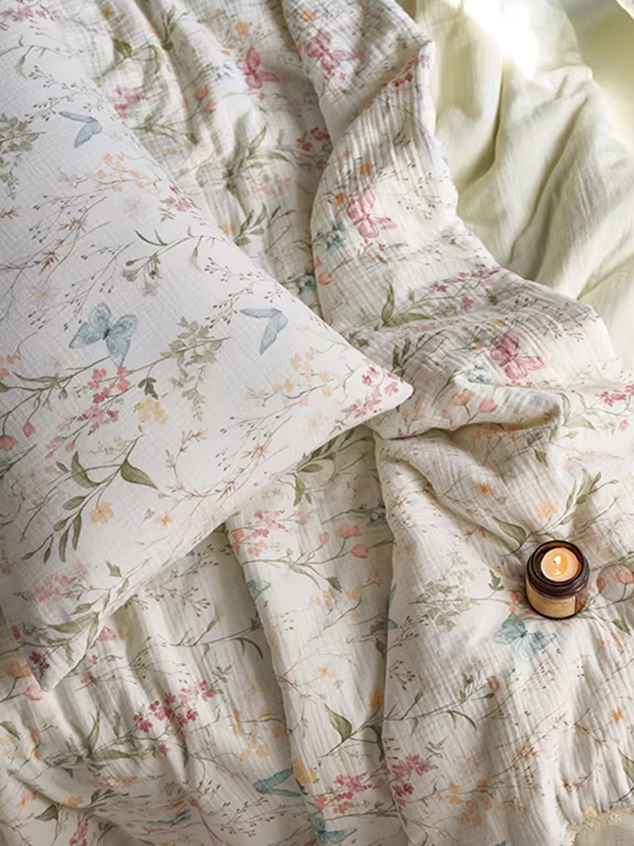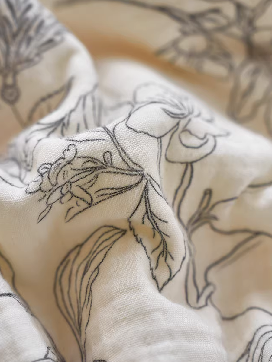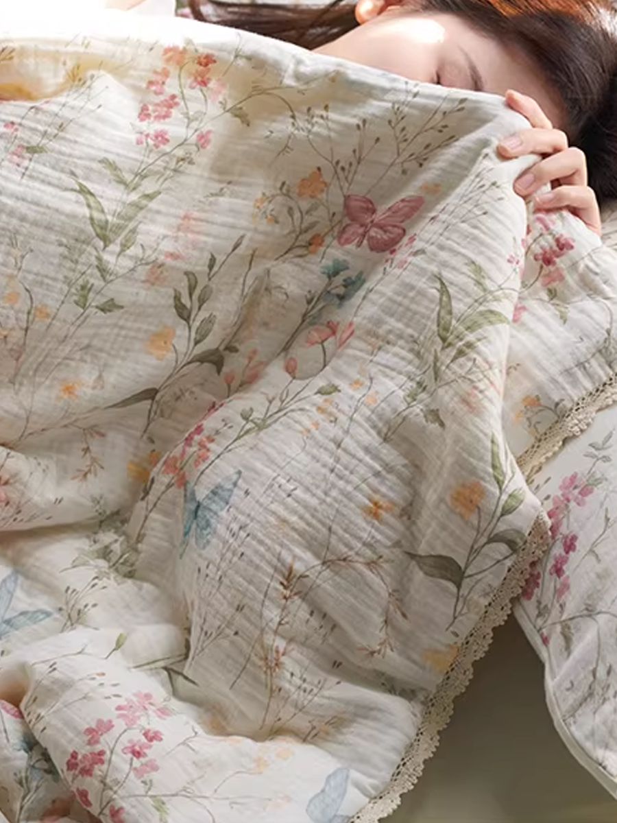Edredón de verano retro de gasa brumosa con estampado floral primaveral