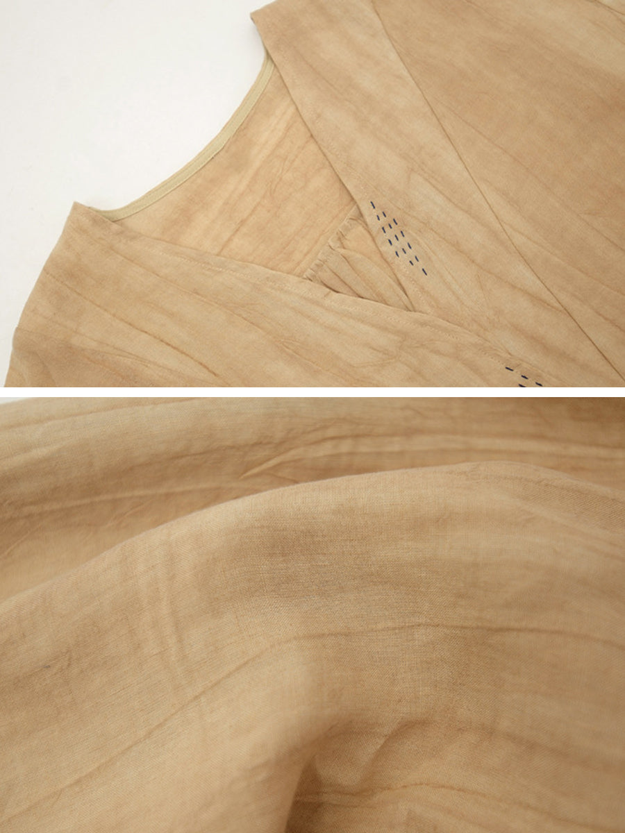 Vestido holgado de lino vintage con escote en V y talla grande para mujer