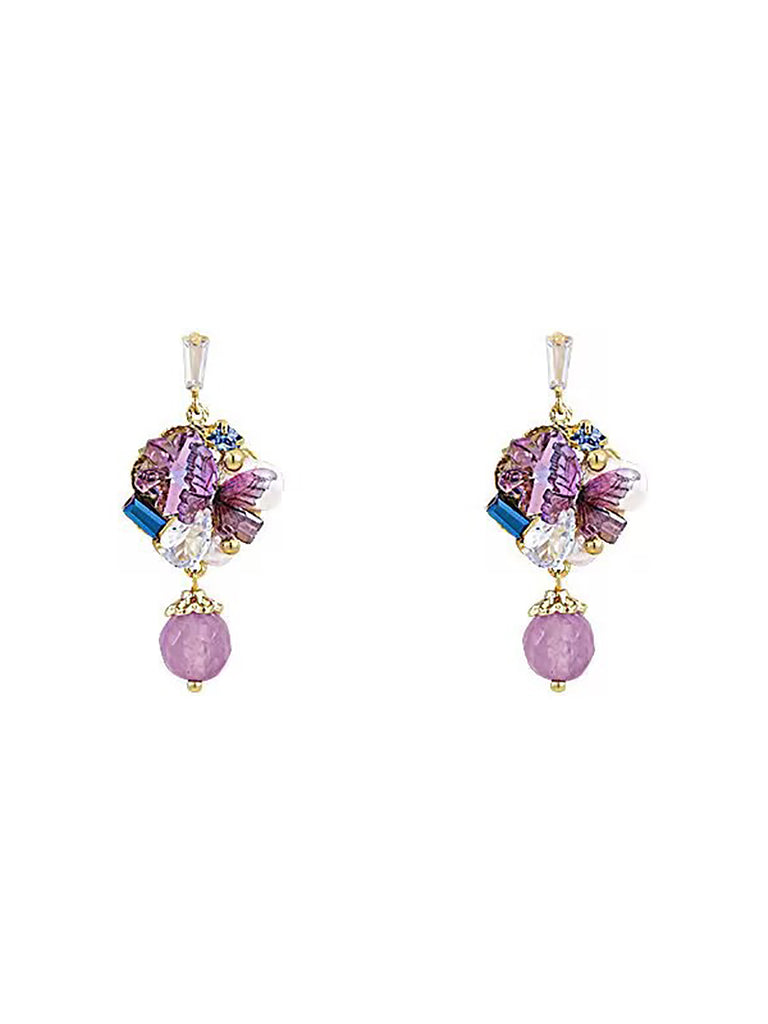Pendientes artísticos de cobre con perlas y cuentas de mariposa para mujer