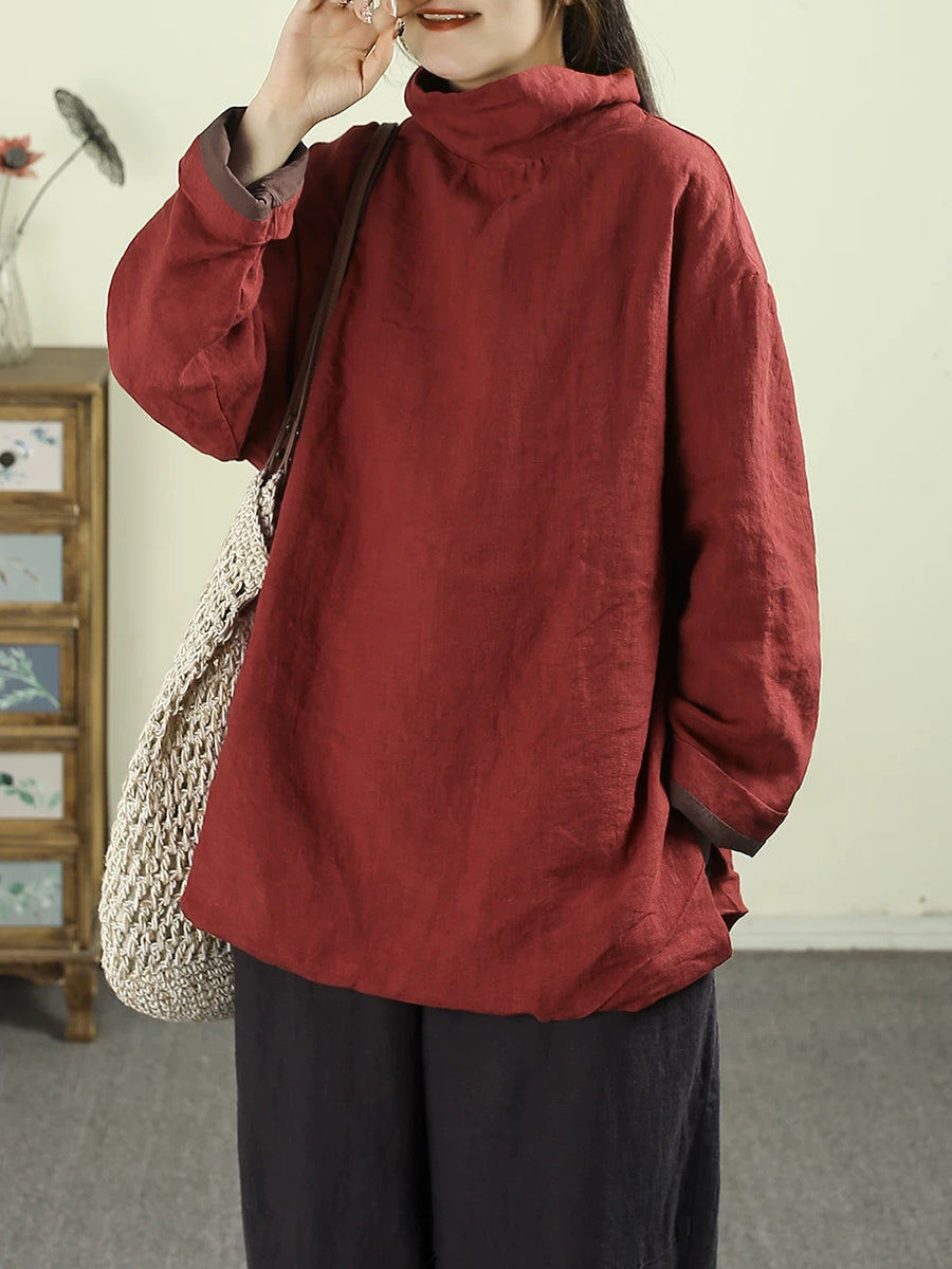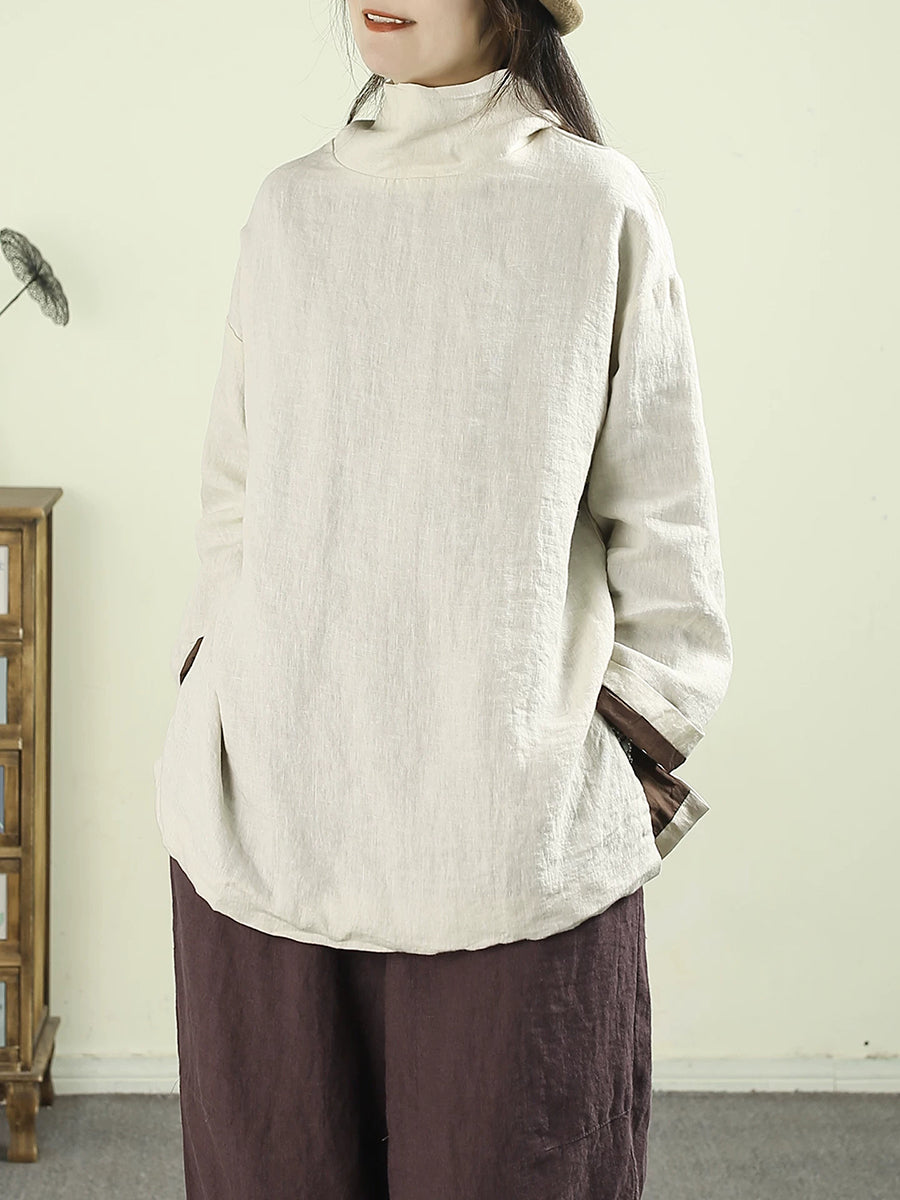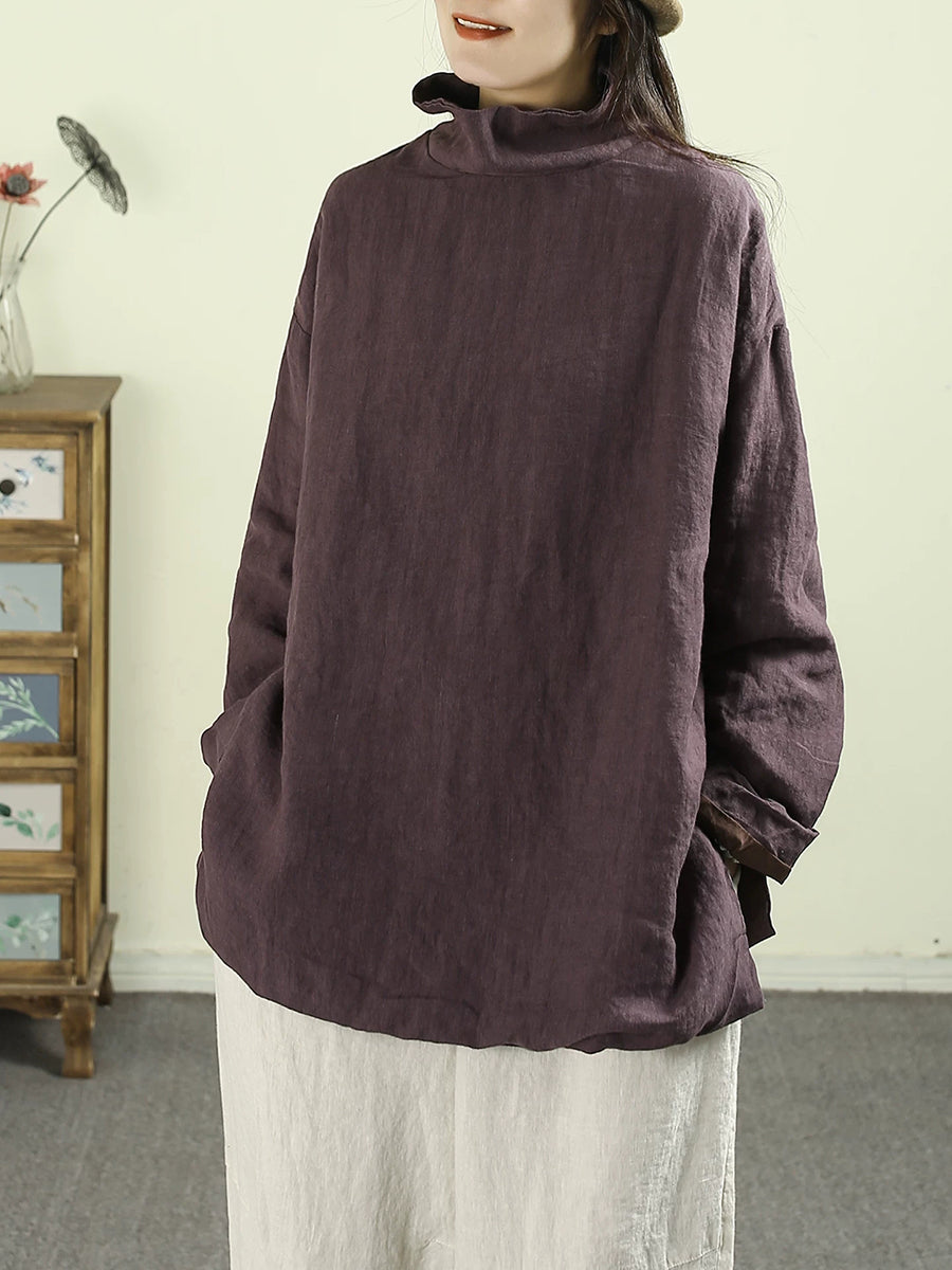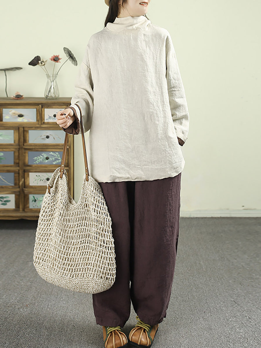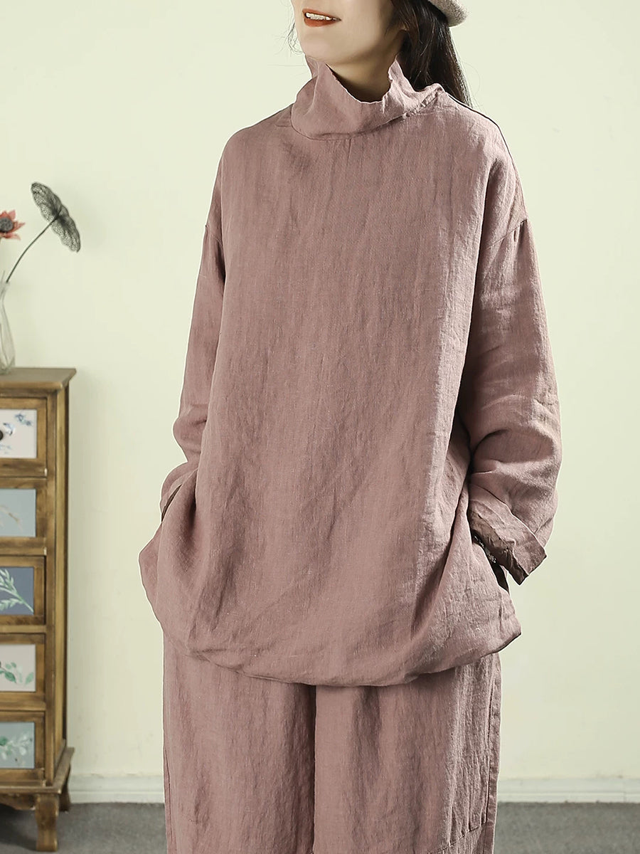 Sudadera con capucha Artsy Pure Color de cuello alto para mujer, 100 % lino