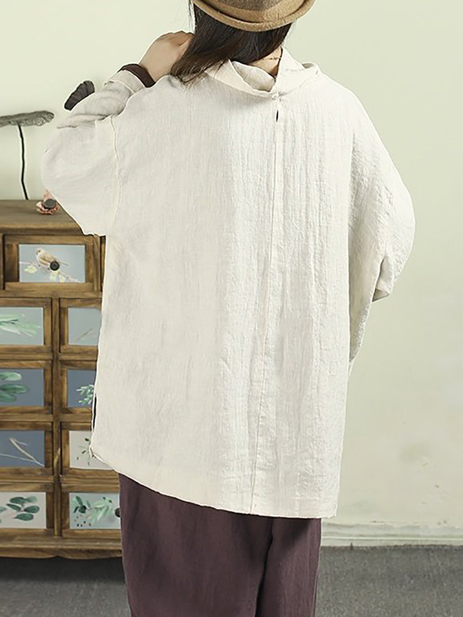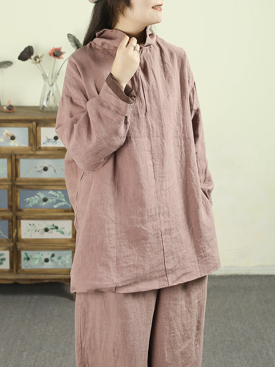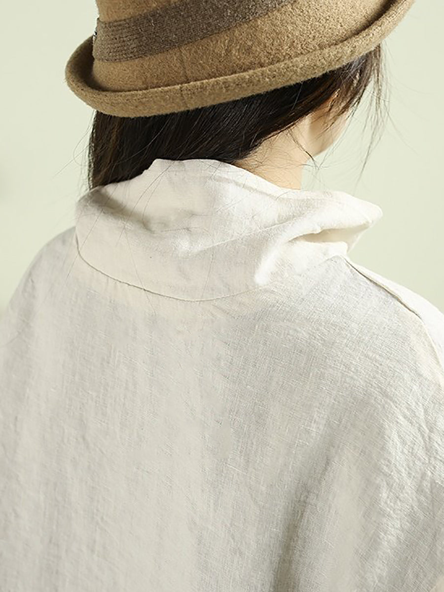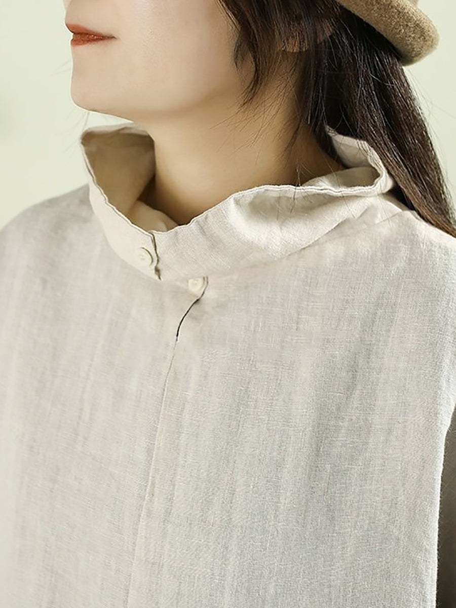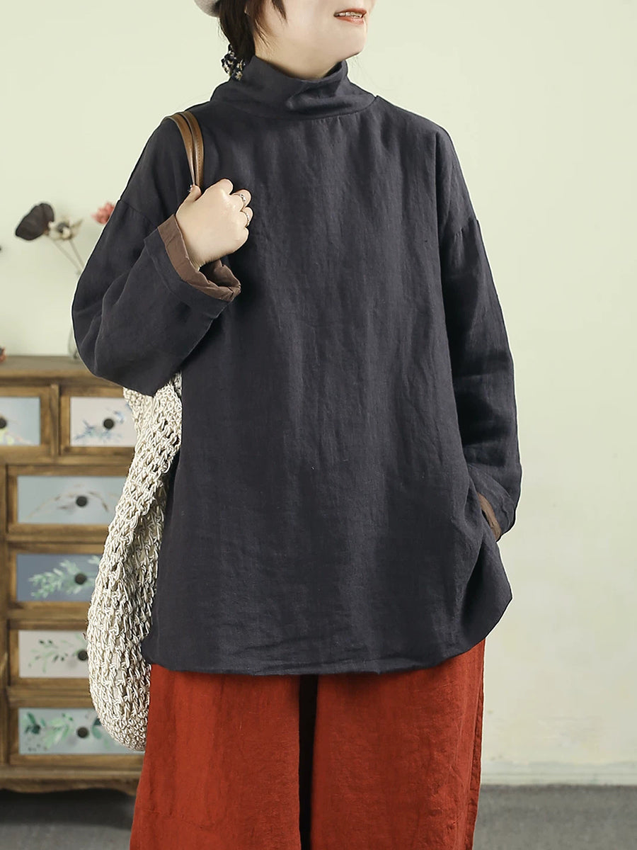 Sudadera con capucha Artsy Pure Color de cuello alto para mujer, 100 % lino