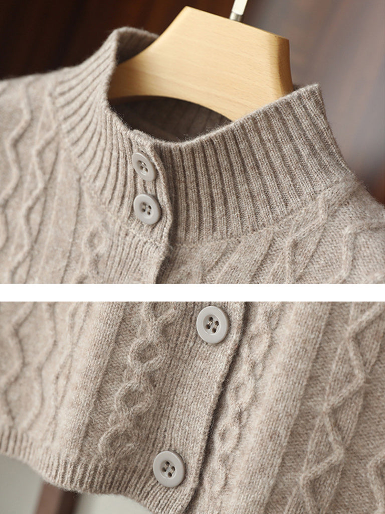 Chal de cuello alto suave de lana de punto trenzado liso y artístico para mujer