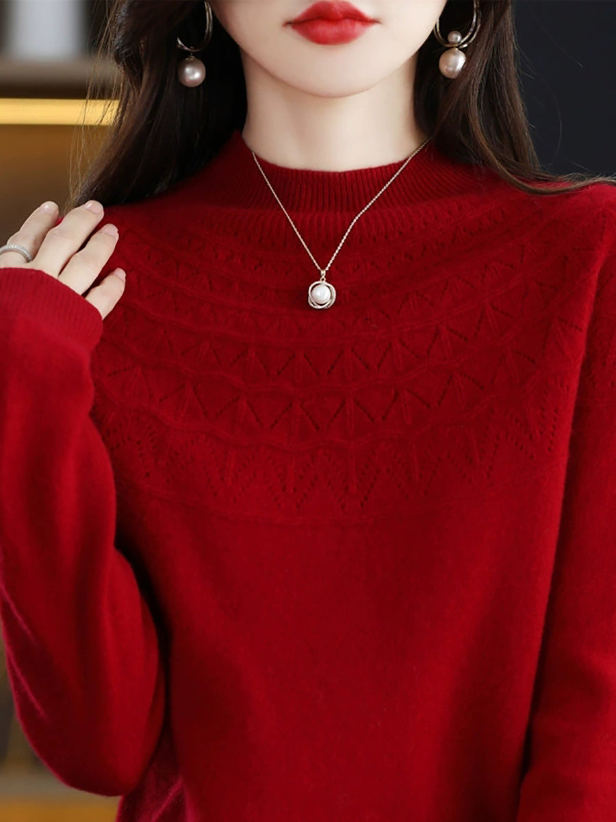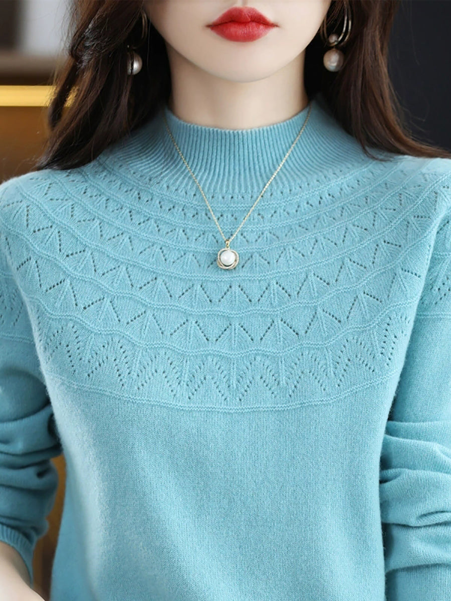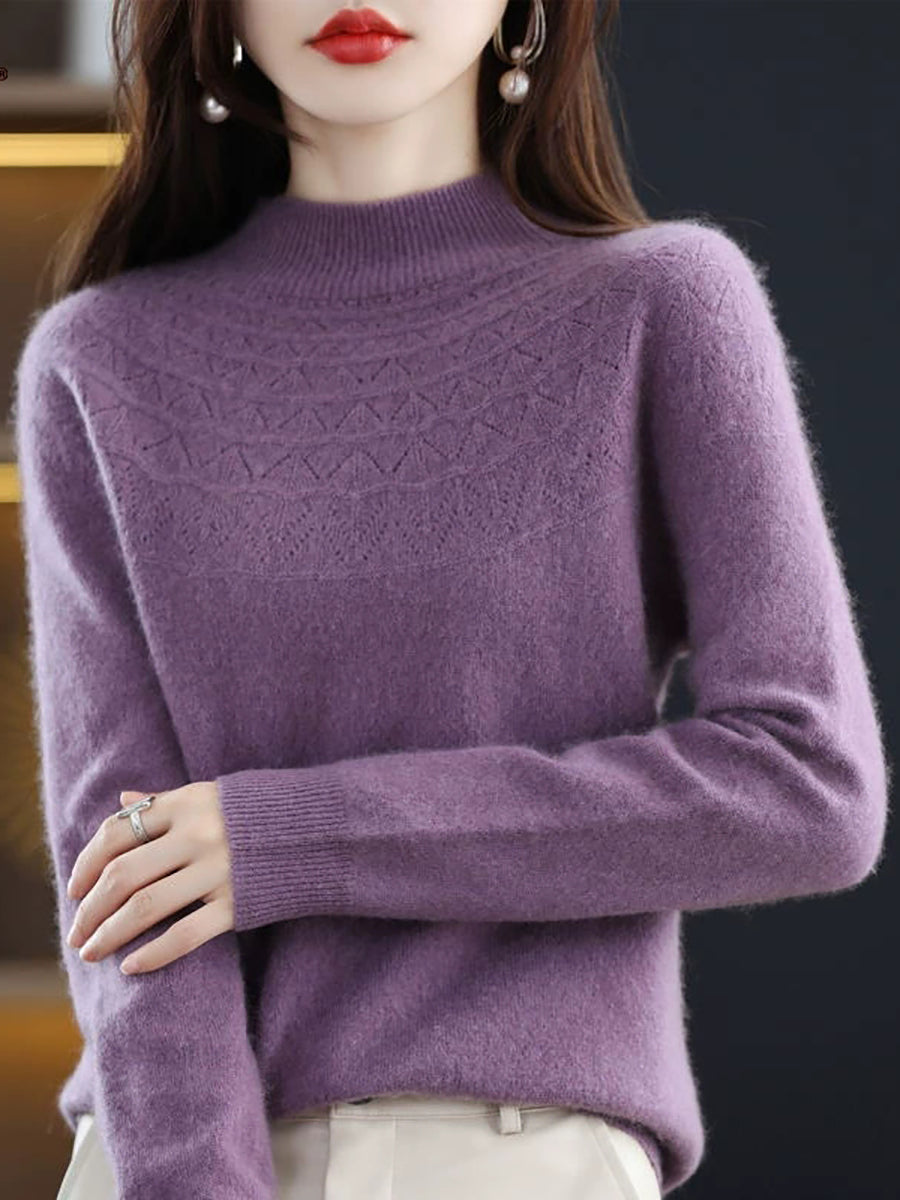 Suéter de cuello alto medio de color puro y estilo artístico para mujer