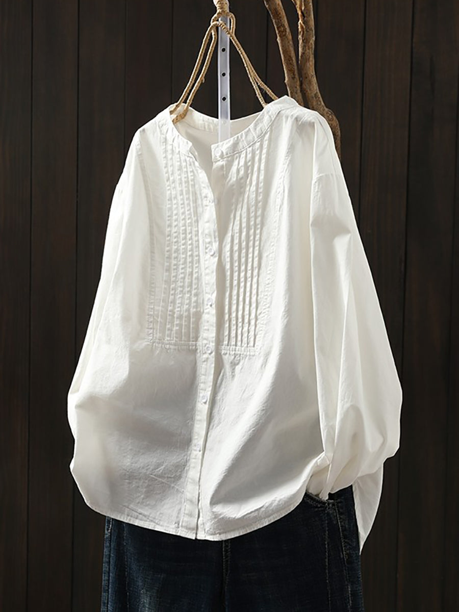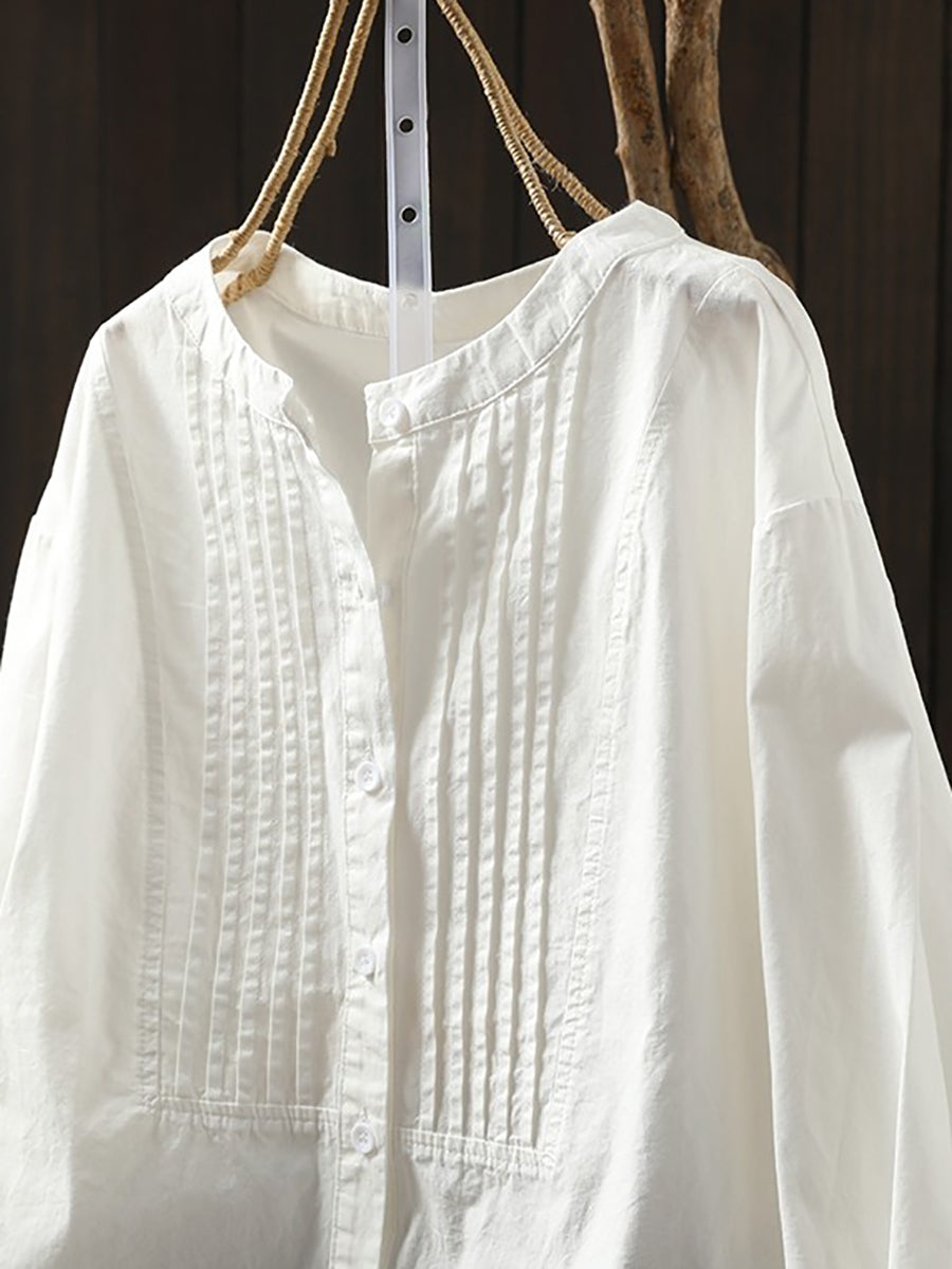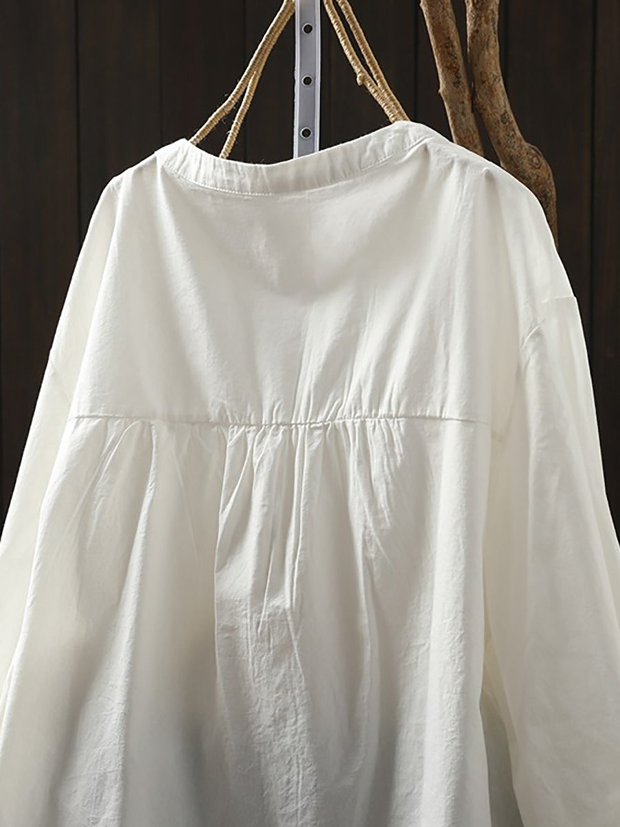 Camisa Artsy Spring fruncida con cuello redondo para mujer, 100 % algodón